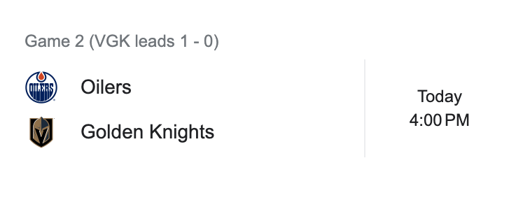 Game two of the Vegas Golden Knights and Edmonton Oilers series is at 3:30pm PST today. The Vegas Golden Knights lead the series 1-0 after winning the first game 1-4. Can the Golden Knights maintain the kind of scoring they had in game one? What will the Oilers response be in game two?