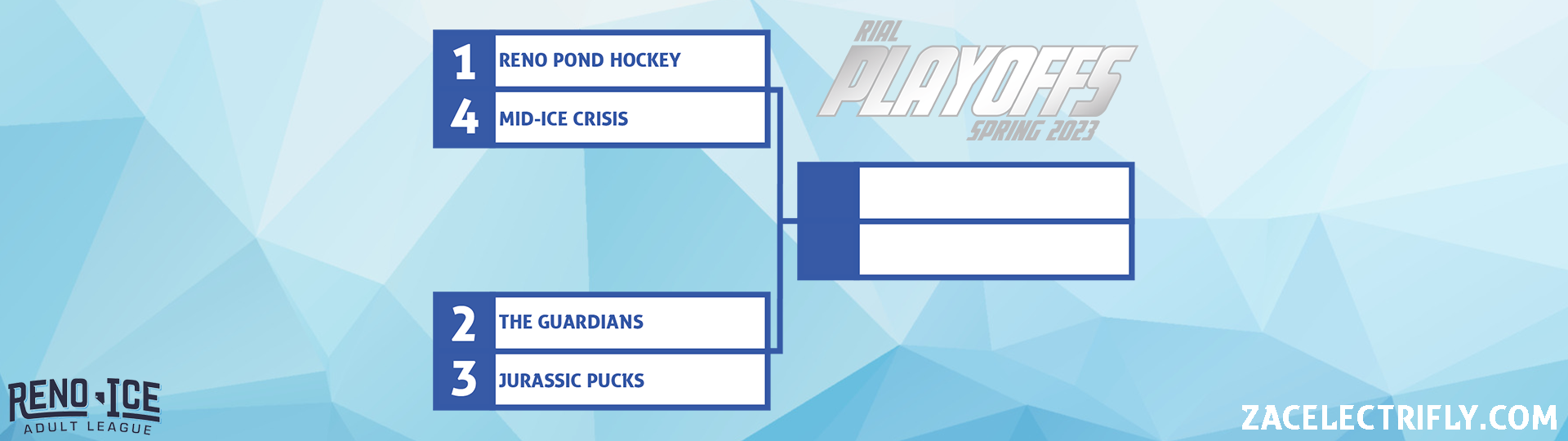 If the playoffs started today Reno Pond Hockey would play Mid-Ice Crisis in the semifinals. The other semifinal matchup would be The Guardians and The Jurassic Pucks.