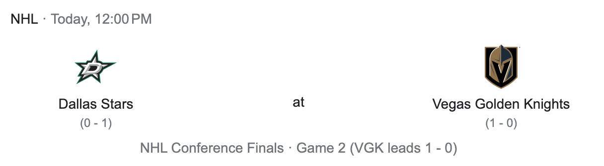 Game two of the Western Conference Finals is today. The Vegas Golden Knights have a 1-0 series lead over the Dallas Stars after the Vegas Golden Knights won game one in overtime. Will there be more overtime in game two? Will game Two be as close as game one? Will the either team be able to keep a lead? Will the Golden Knights take a 2-0 series lead? How will the Stars respond? Will the Stars be able to get the split and tie the series in Vegas?