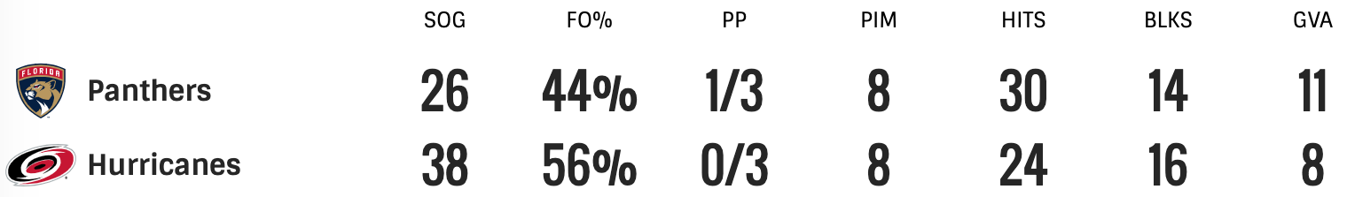 Coming into game game two of the Eastern Conference Finals the Florida Panthers had a 1-0 series lead over the Carolina Hurricanes. The Panthers won game one 3-2 in the fourth overtime. In game three the Hurricanes got on the board early in the game with a goal from Jalen Chatfield to go up 1-0. They would take that lead into the second period.