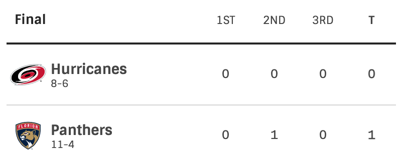 Coming into game three of the Eastern Conference Finals the Florida Panthers had a 2-0 series lead over the Caorlina Hurricanes. The Panthers won game one in the fourth overtime and they won game two in overtime. The only goal in game three came half way through the second period. Sam Reinhart scored on the powerplay. His goal gave the Panthers the lead. His goal would end up being the game winning goal. The final score was 1-0 Panthers. The Florida Panthers now have a 3-0 series lead in the Eastern Conference Finals over the Carolina Hurricanes. The Florida Panthers are now win away from winning this series.