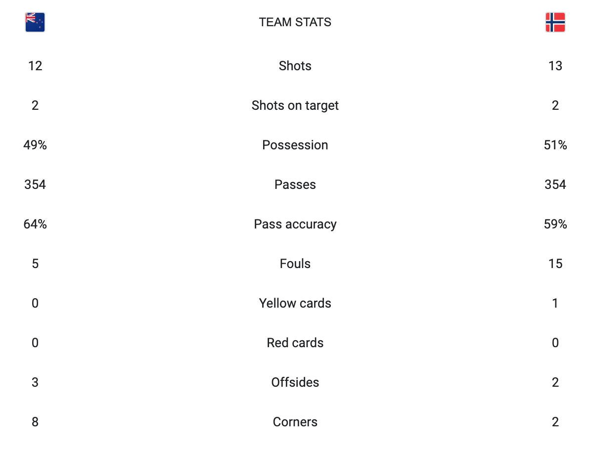 New Zealand played Norway to open up the FIFA Women’s World Cup 2023. This was a Group A match. New Zealand scored the only goal of the game in the 48′ minute. Hannah Wilkinson scored the goal. On the fast break they were able to get behind the Norway defenders and find the back of the net. The two defenders the middle let the New Zealand player get past them. I think they were trying to get an offsides call but in that situation on a fast break I think it is better to defend the player in the middle then to let them run free. Both teams had plenty of chances including a missed penalty by New Zealand that went off the crossbar. With close to 10′ minutes of extra time this game really could have gone either way.