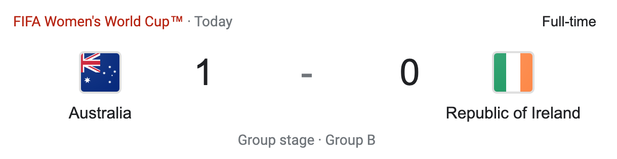 This was not a surprising result for me. The big surprise here was the back to back shutouts. Australia beat who they needed to and got a shutout in the process. Now both host countries have won their opening match of the tournament. With these results my mind goes back to Qatar and how they lost their opening and match and were the first host country who lost their opening match at the FIFA World Cup.