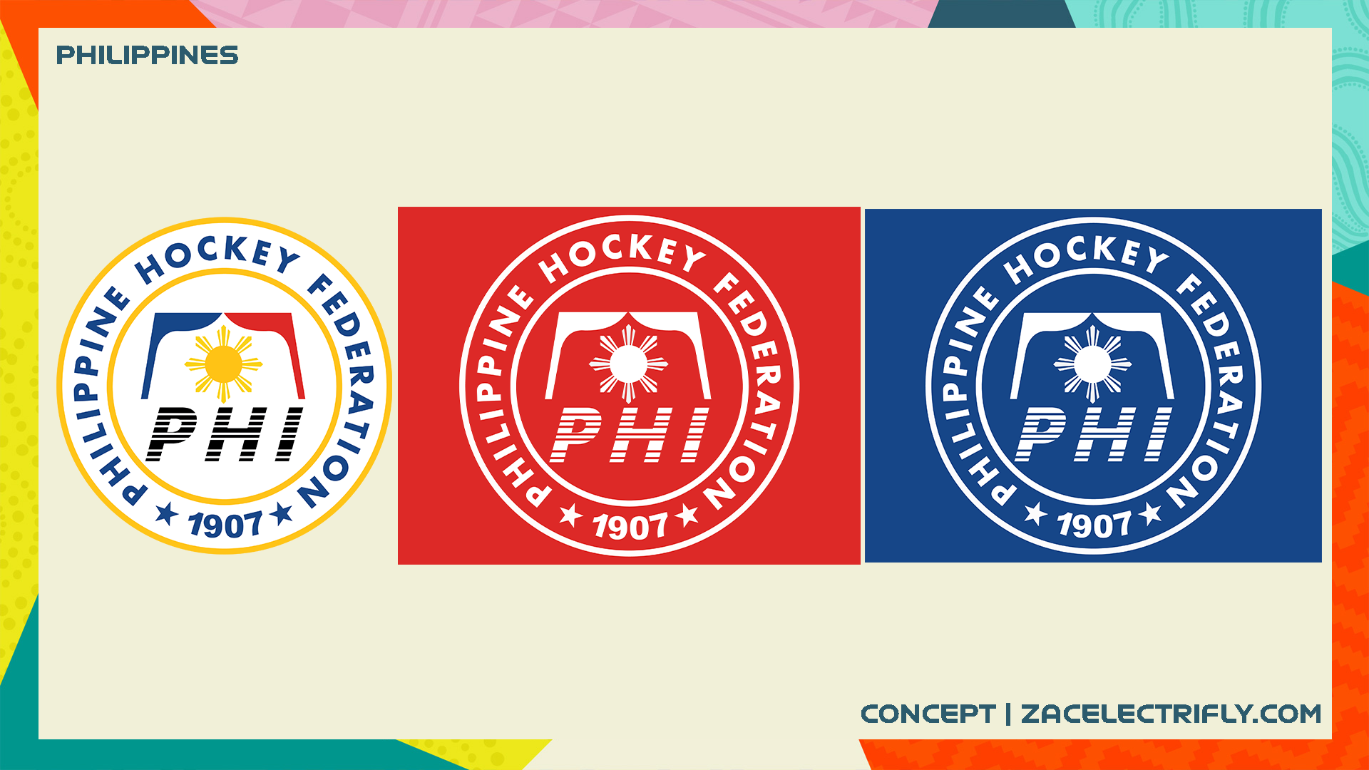 The Philippines are sponsored by Adidas. Their colors are blue, red, white, yellow, and black. I did modify their logo. I replaces the word football with hockey in the logo. I got rid of the soccer ball in the logo and replaced with the sun from their flag. I changed PFF (Philippines Football Federation) to PHI which is the country abbreviation. I also made a white and red and white and blue logo to match the ones seen on their FIFA Women;’s World Cup 2023 kits. They have a blue jersey , a white jersey, and a red jersey. On their collar is the Philippines flag. The Philippines do have a program that does encourage the growth of women’s ice hockey in the country but it does not look like they have a league.