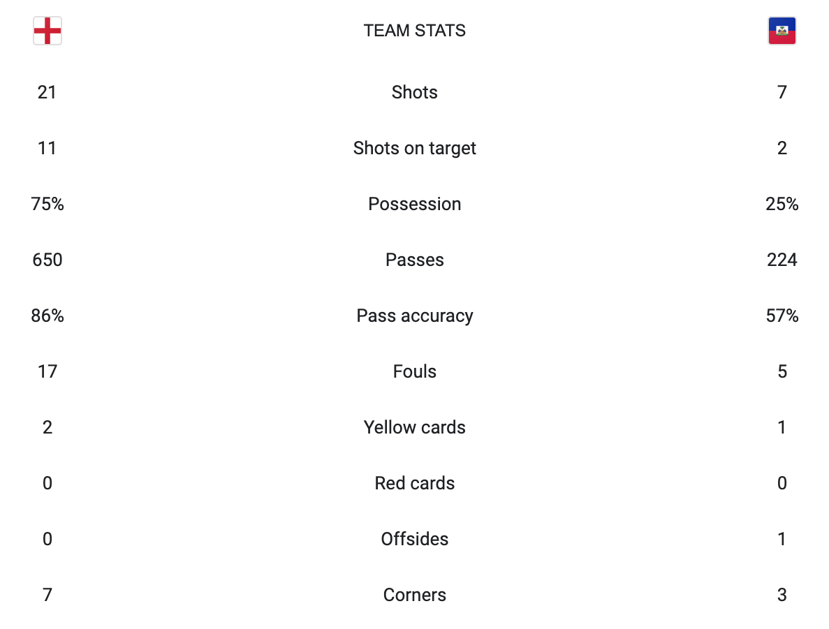 England vs Haiti