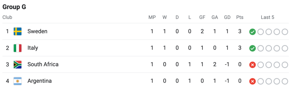 Switzerland leads Group A. Norway is last in Group A. Germany still lead Group H with Colombia now in second.
