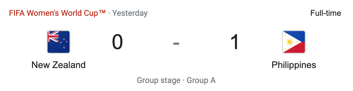 This was the Philippines first ever FIFA Women’s World Cup win. They need at least a draw to keep their world cups alive and got a win. Overall watching the game it felt like they outworked New Zealand. They were winning loose balls. They were winning headers. In the end it only takes one goal.