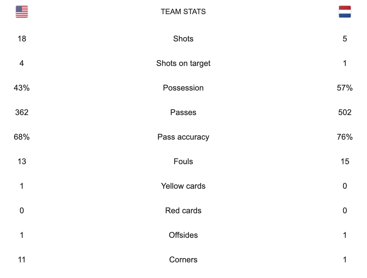 The United States had plenty of shots and chances. Possession was close. The United States also had eleven corners. That is a lot of set pieces that they didn’t do a lot with.