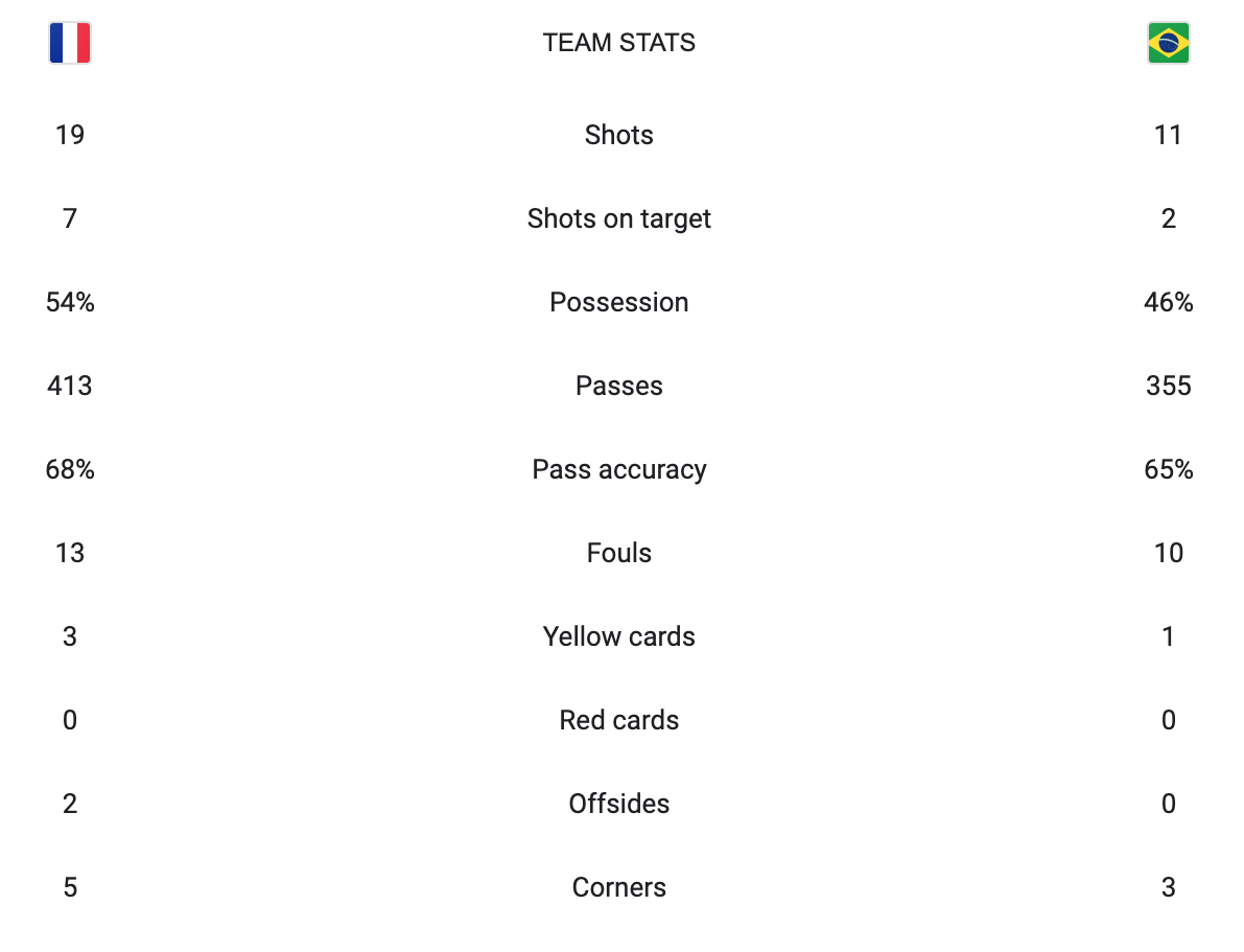 It was a close game with France getting the edge. France pulled off the win. It could have gone either way. Both teams played really well.