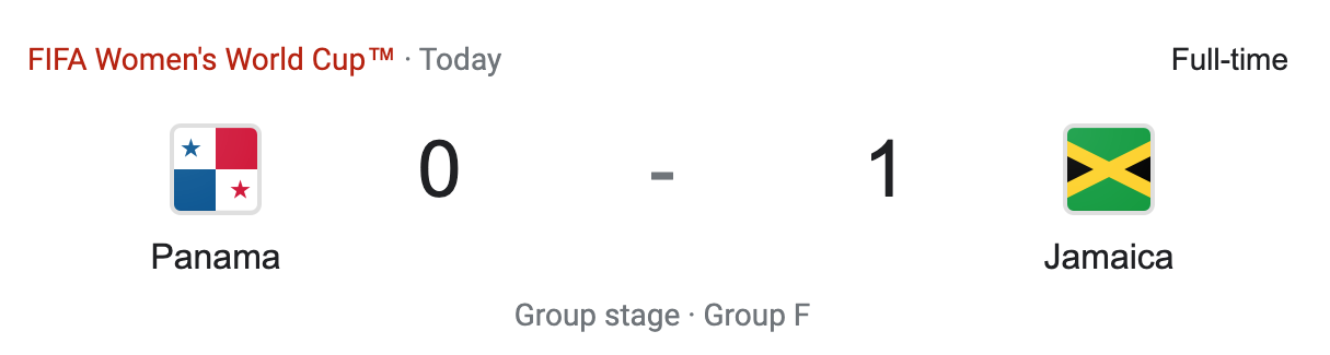 Jamaica won their first game. Thats big for them. They are now in a solid position for trying to advance out of the group stage. Panama’s goal keeper really kept them in this game. Unfortunately Panama couldn’t give her any help on offense. With this result Panama have been eliminated from the FIFA World Cup 2023 in the group stage. Panama have also not scored a goal after two games.