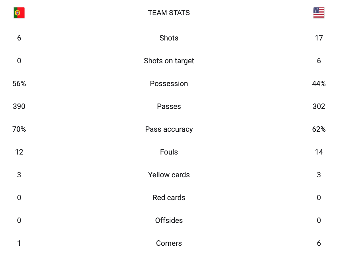 1. […] I have a full review for this game go check that out. The score was 0-0 at halftime. The Netherland were up 5-0 over Vietnam at the time. That meant that at halftime the United States would have to win 4-0 with the Netherlands not scoring again to win the group. That wasn’t looking likely. The longer the game went on the more likely it looked that it would end 0-0 or 1-0. Portugal almost won the game late but the ball went off the post. The game ended in a 0-0 draw. […]