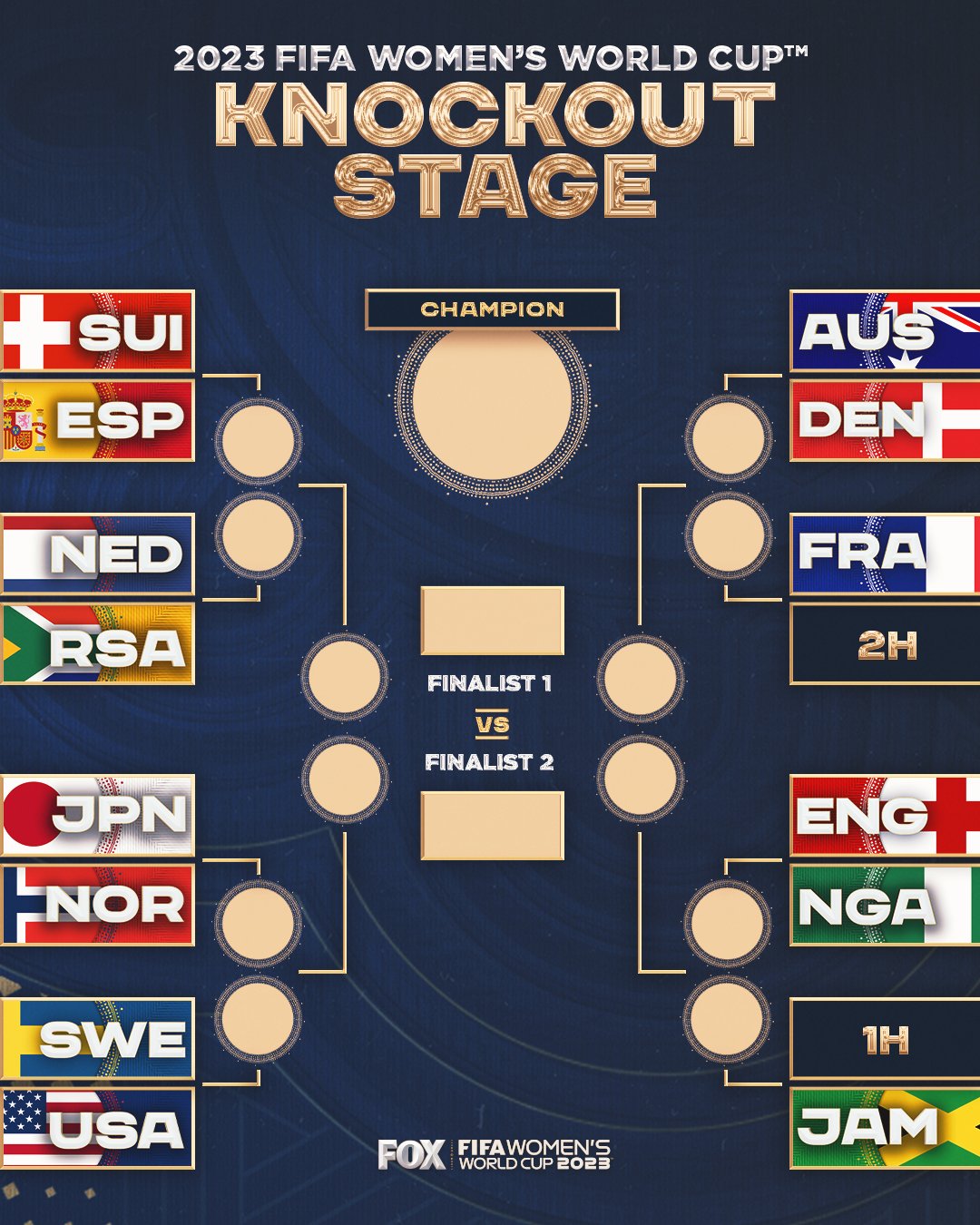 Japan, Spain, England, Sweden, Switzerland, Norway, Colombia, Australia, Nigeria, the Netherlands, the United States, Denmark, South Africa, France, and Jamaica are advancing to the Round of 16.