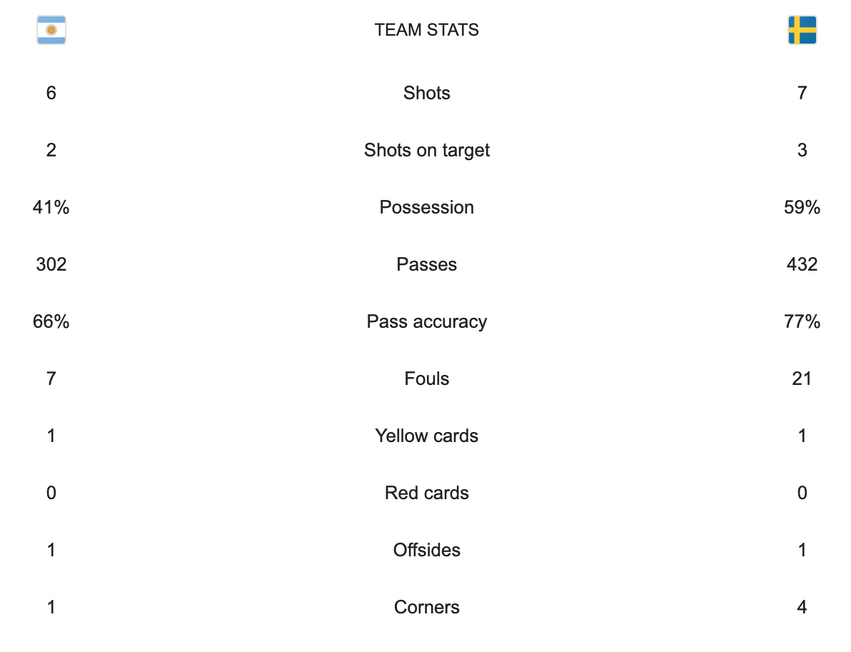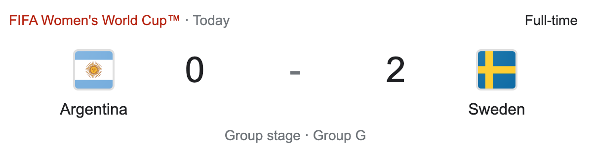 The result for this game was as expected. Argentina kept it close up until the final minutes of the match. With that result Argentina have been eliminated from the FIFA Women’s World Cup 2023. Argentina finish the tournament having lost two matches and drawn one match. They scored two goals. They are the fifth team to be eliminated without winning a game. Sweden won Group G with this result. They won all three of their group stage games. They will play the United States in the Round of 16.