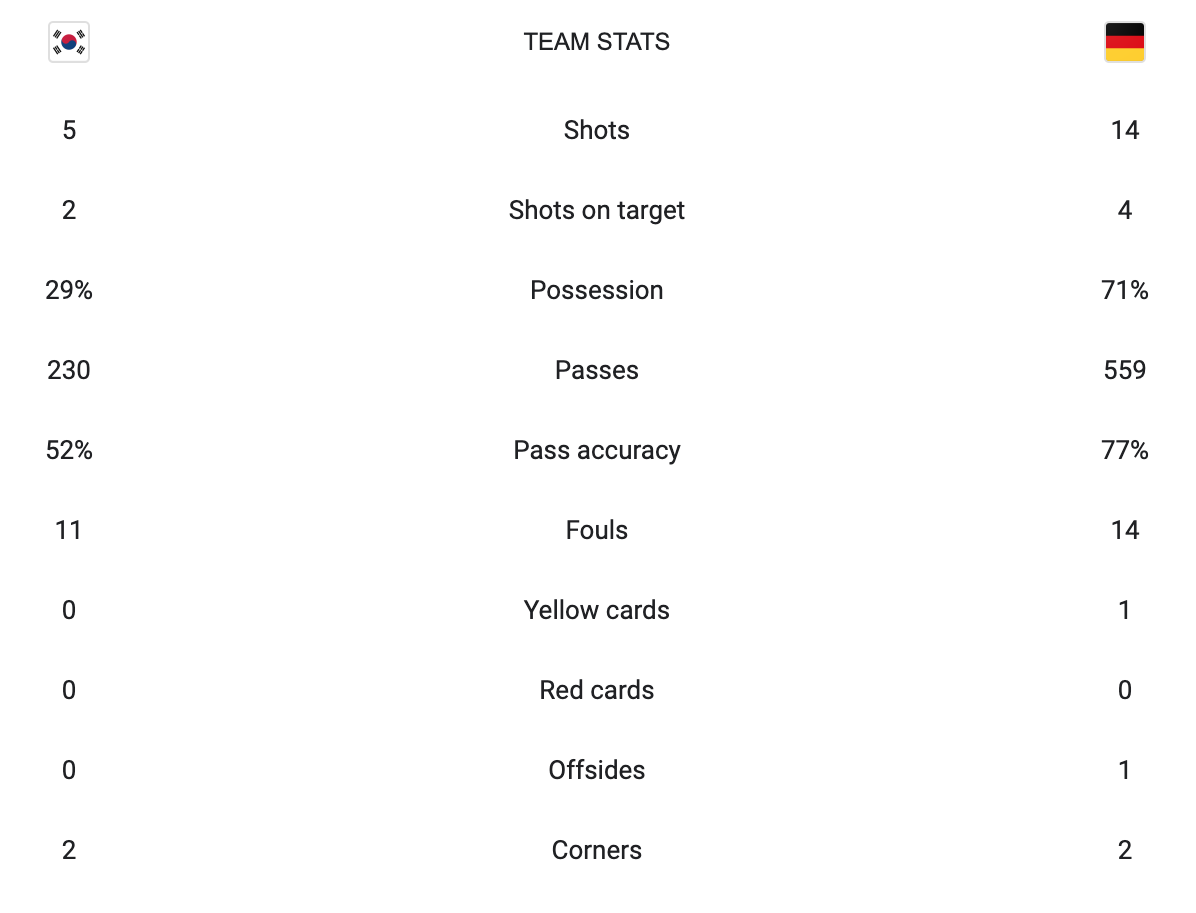 Germany didn’t get the blowout they were expecting. They finish the tournament with an extremely disappointing result. They came into the tournament ranked number two. They were expected to go deep into the knockout stage. It was a tough way for Germany to go out. I still think the Korea Republic goal was offsides. If that was not offsides then neither was the German’s second goal. But Germany also had enough shots and opportunities to take the lead and didn’t. With this result both teams have been eliminated in the group stage.