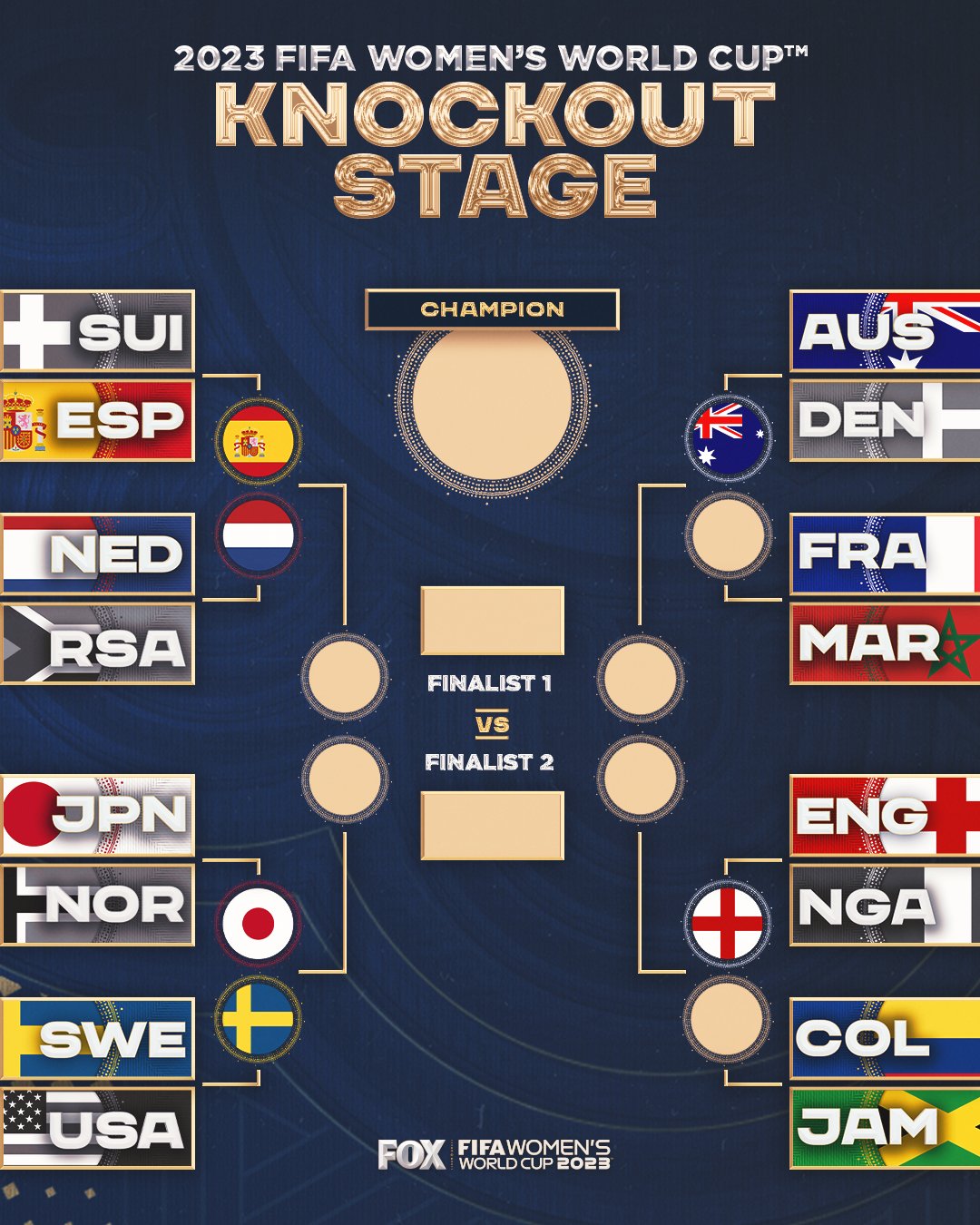 Japan, Spain, England, Sweden, Switzerland, Norway, Colombia, Australia, Nigeria, the Netherlands, the United States, Denmark, South Africa, France, Jamaica, and Morocco advanced to the Round of 16.