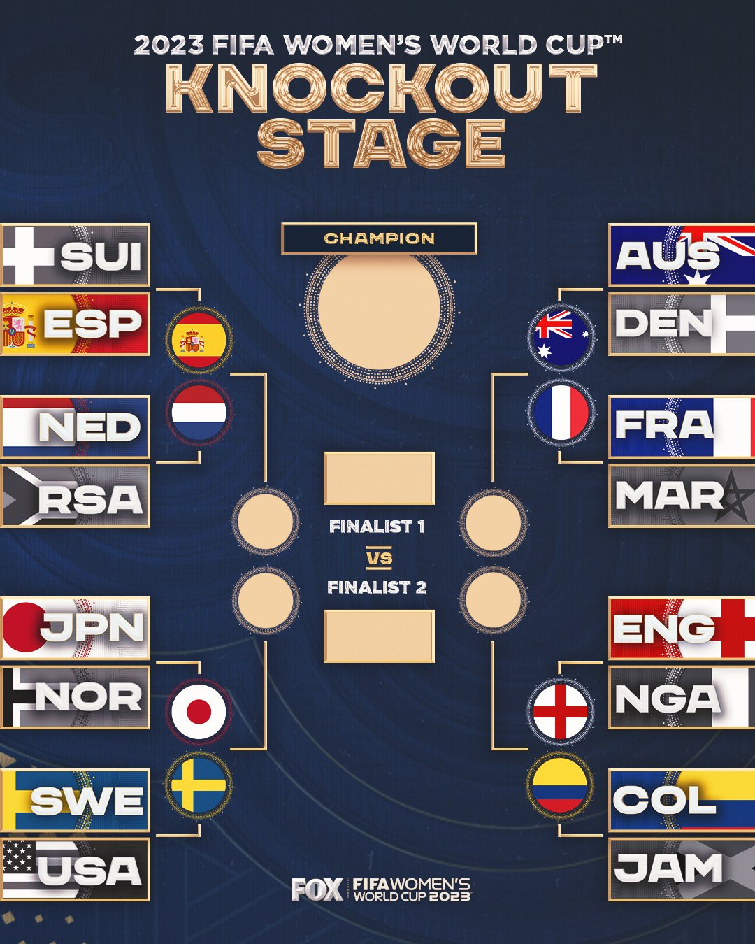 Japan, Spain, England, Sweden, Switzerland, Norway, Colombia, Australia, Nigeria, the Netherlands, the United States, Denmark, South Africa, France, Jamaica, and Morocco advanced to the Round of 16.