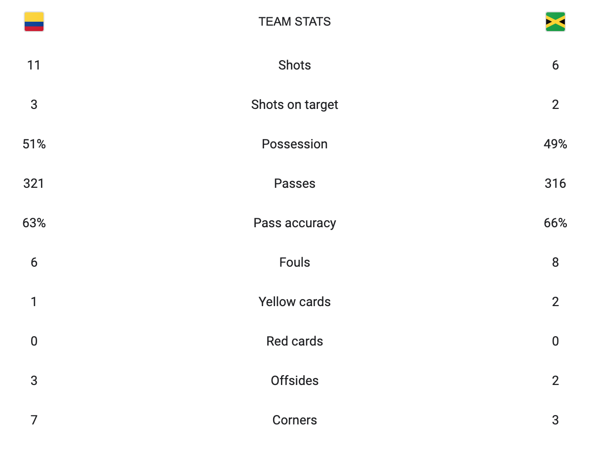 Colombia vs Jamaica