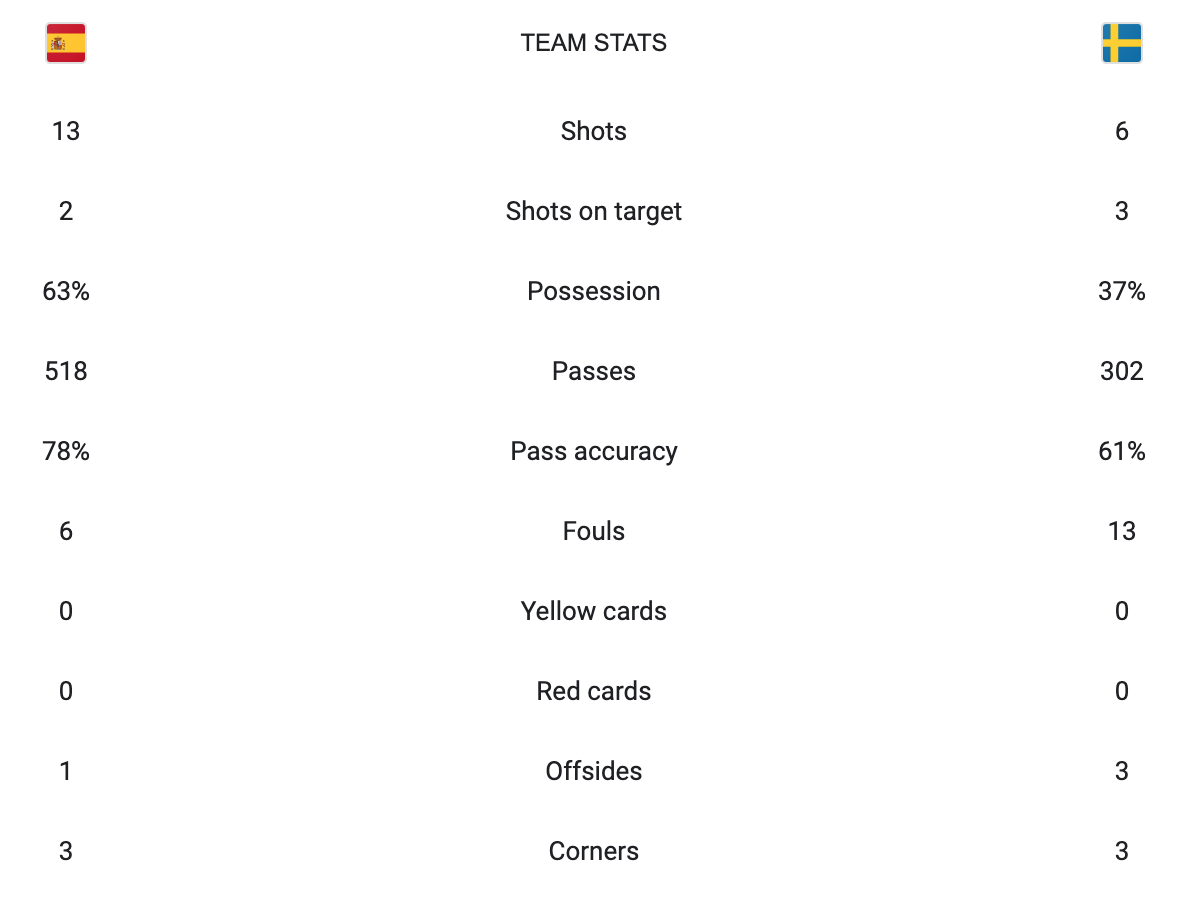 Neither team scored in the first half. At halftime the score was tied at 0-0. Spain took the lead in the 81′ minute. The goal was scored by #18 Salma Celeste Paralluelo Ayingono. The ball was put into the box. It bounced around before being kicked in. Sweden tied the game in the 88′ minute with a goal from #15 Rebecka Blomqvist. The ball was crossed into the box. A Sweden player headed the ball towards her. She had plenty of space and time to score. Spain respond with a quick goal in the 89′ minute from #19 Olga Carmona. She got the ball off of a corner kick. She took a shot from just outside of the box to score. The final score was 2-1 Spain.
