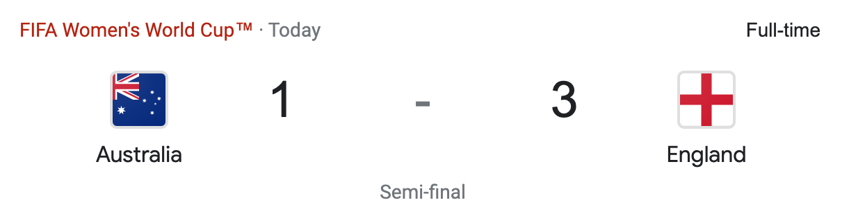 England capitalized on the Australian defensive mistakes allowing them to put the game out of reach for Australia. Overall it was a good game. England wanted to go to the final and they showed it. With that result England are now in the Final. They will play Spain. That game will be on Sunday, August 20th, at 3:00 AM PST. Australian will now face Sweden in the third place match. That game will be on Saturday, August 19th, at 1:00 AM PST.