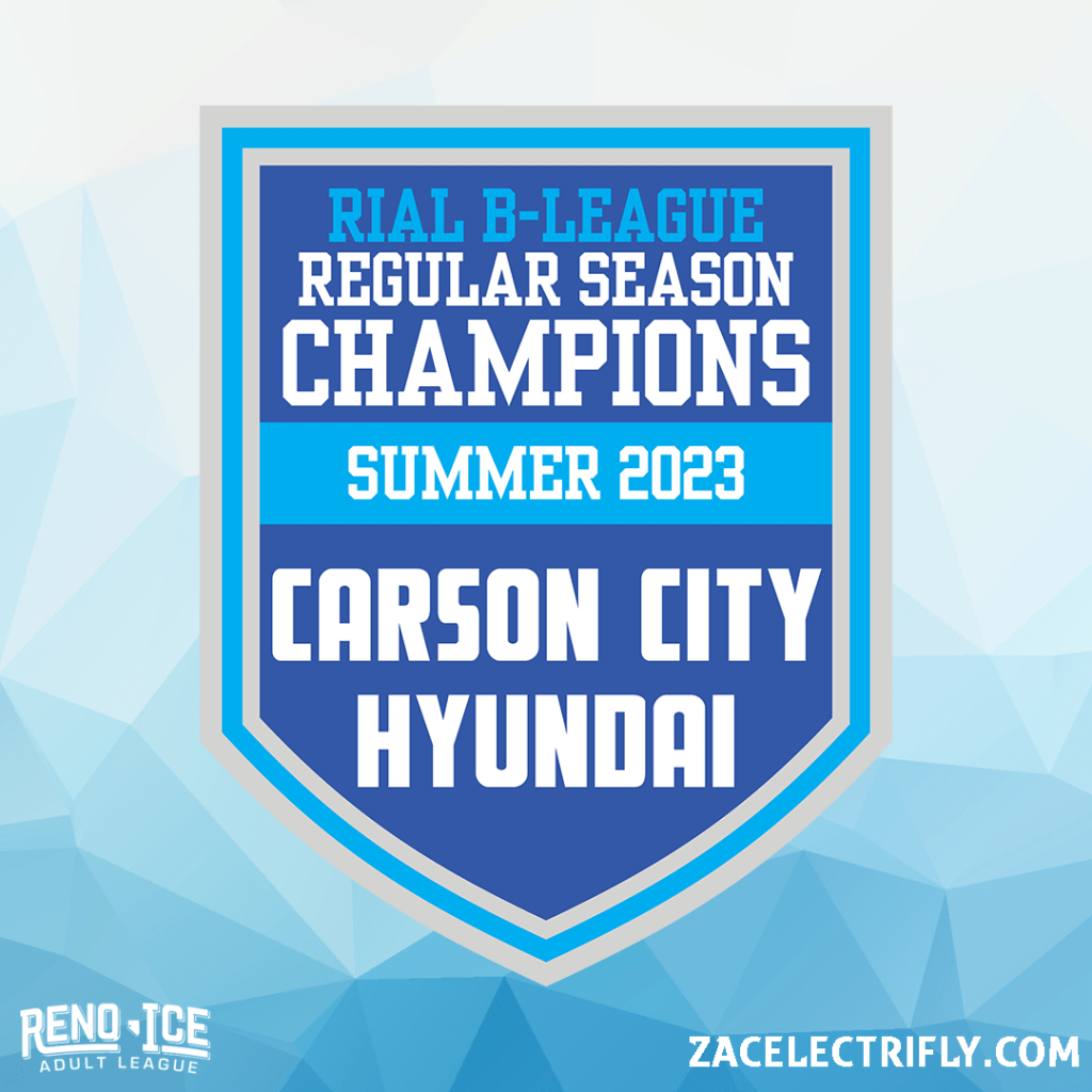 Carson City Hyundai are the RIAL Summer 2023 B-League Regular Season Champions. They had the best record in the B-League this season. They went 9-1-0 with 18 points. This is their first regular season title.