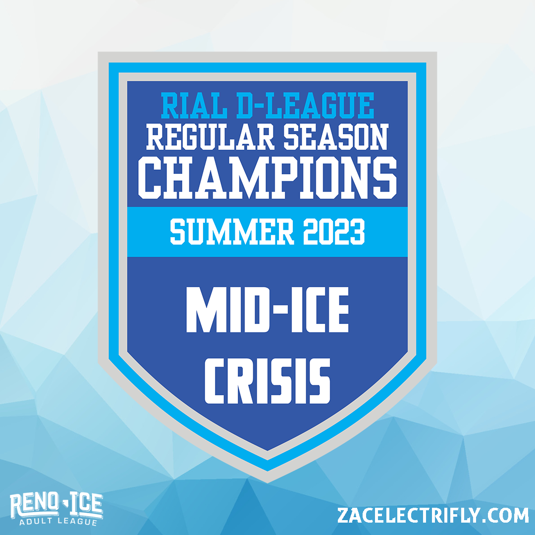 Mid-Ice Crisis are the RIAL Summer 2023 D-League Regular Season Champions. They had the best record in the D-League this season. They went 9-0-1 with 19 points. This was their first RIAL Regular Season title.