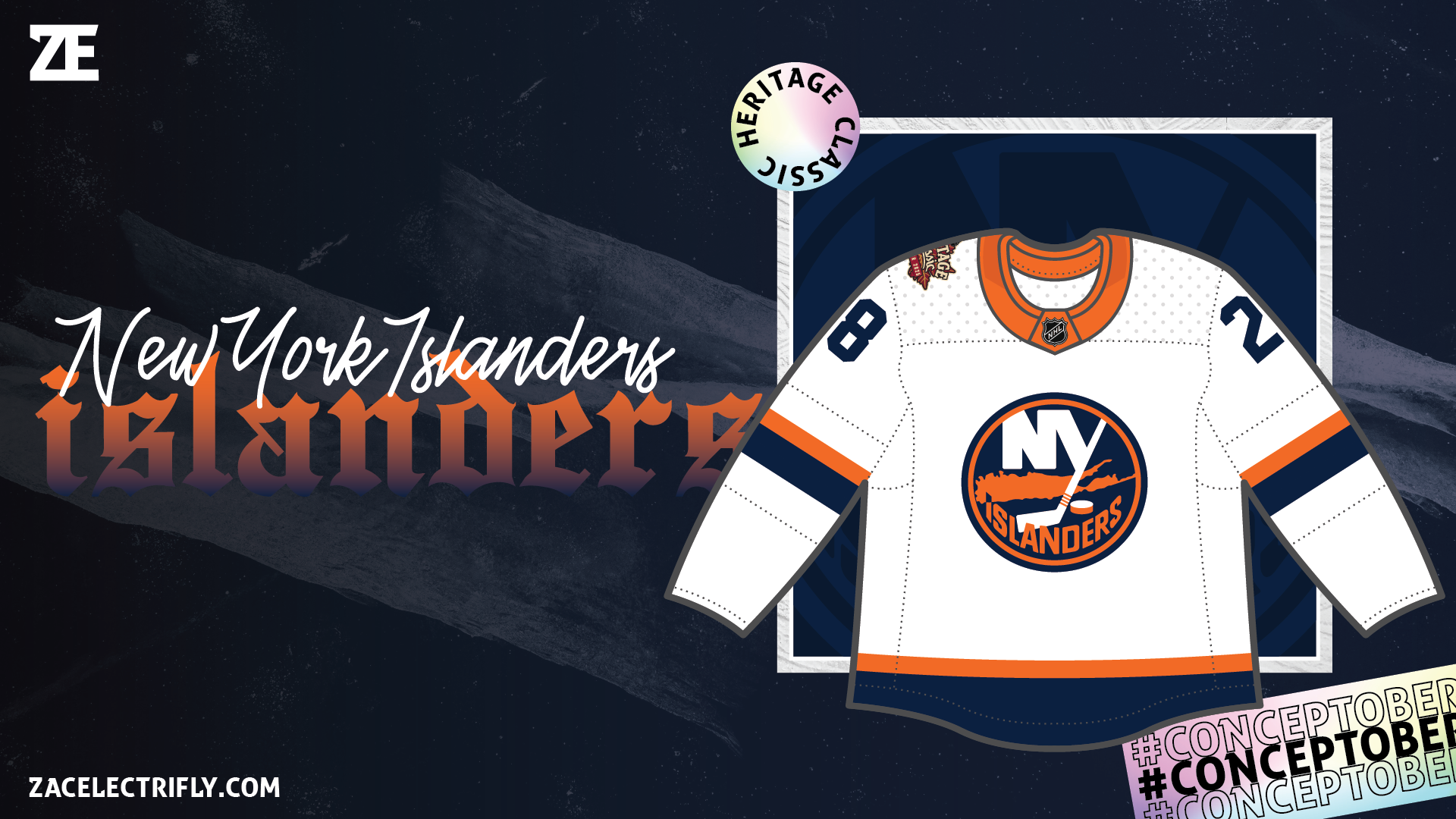 The New York Islanders jersey is white, blue, and orange. The jersey is based on their 1978 away jersey. The colors are the same colors they used for their 2021 Reverse Retro jersey. On the front is a recolored version of their current logo. On the shoulder is the event logo.