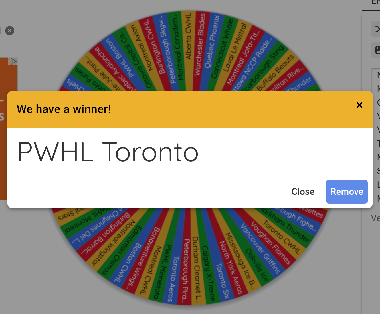 Again I used the Wheel of Names to pick a team for this concept. I drew from sixty three possible teams. I drew from the Canadian Women’s Hockey League (2007-2019), the National Women’s Hockey League (1992-2007), The Premier Hockey Federation (2015-2023), and the Professional Women’s Hockey League. The winner was the PWHL Toronto.