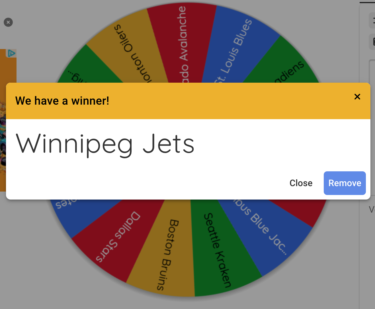 The winners ended up being the Winnipeg Jets and Ottawa Senators.
