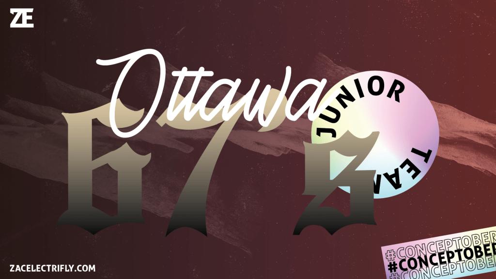 Like I said in my last three posts, I am super behind on Conceptober. The prompt on the 22nd was to create a jersey concept for a junior team. Junior teams in ice hockey are teams consisting of players from sixteen to twenty one years old. The most popular and top level of junior hockey is the Canadian Hockey League which consists of sixty teams in three separate leagues. Pretty much every National Hockey League player has played junior hockey before playing in collage or playing pro.