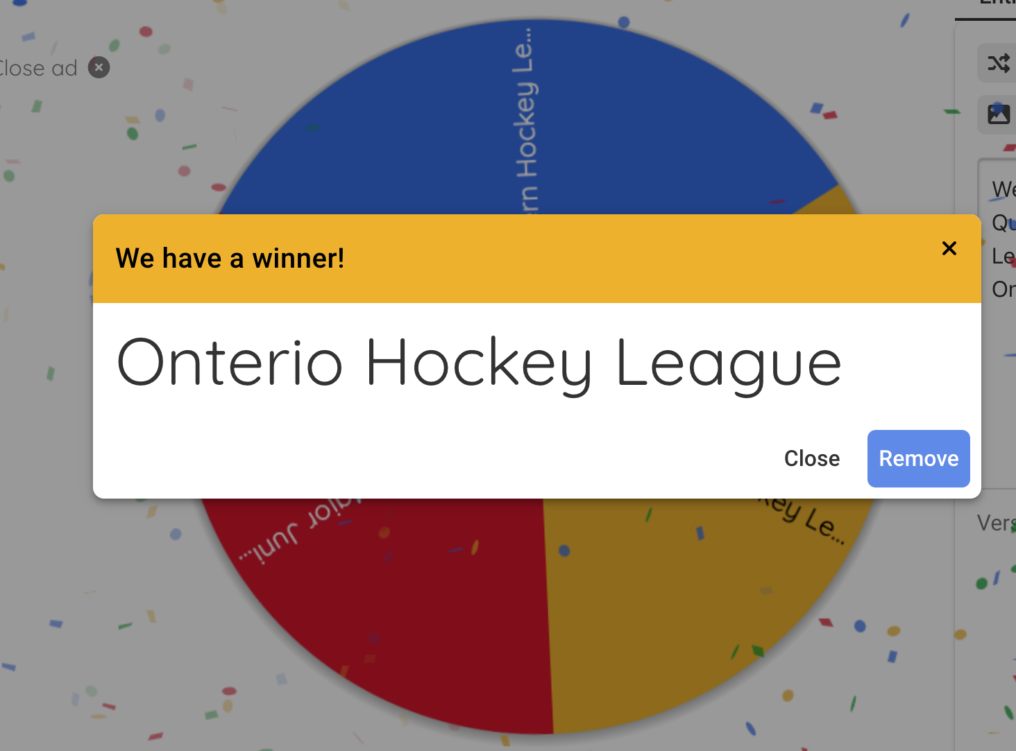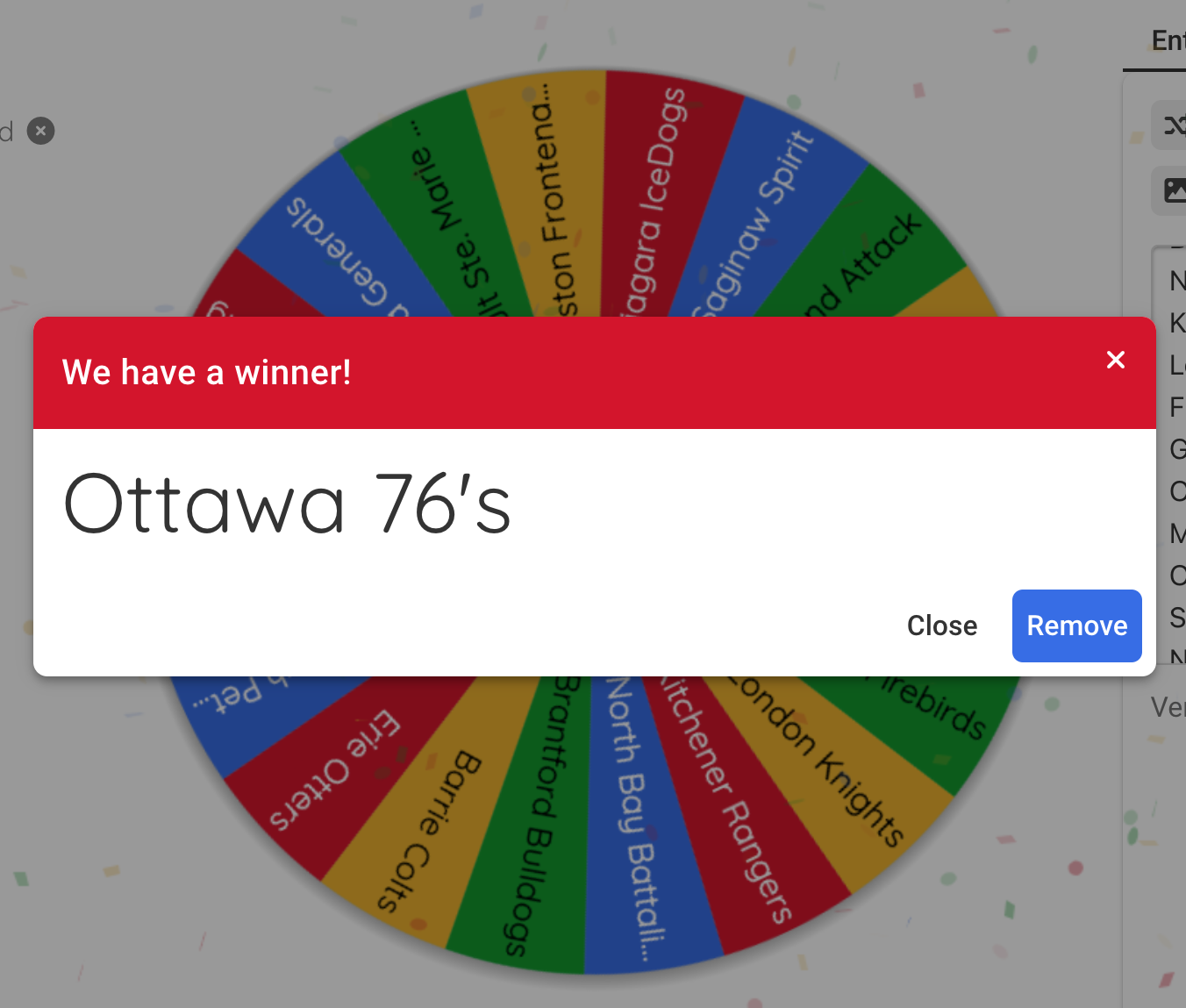 Again I used the Wheel of Names to pick a team. I stuck with the Canadian Hockey League to make things simple. The Ontario Hockey League won the first spin. The Ottawa 67’s won the second spin.