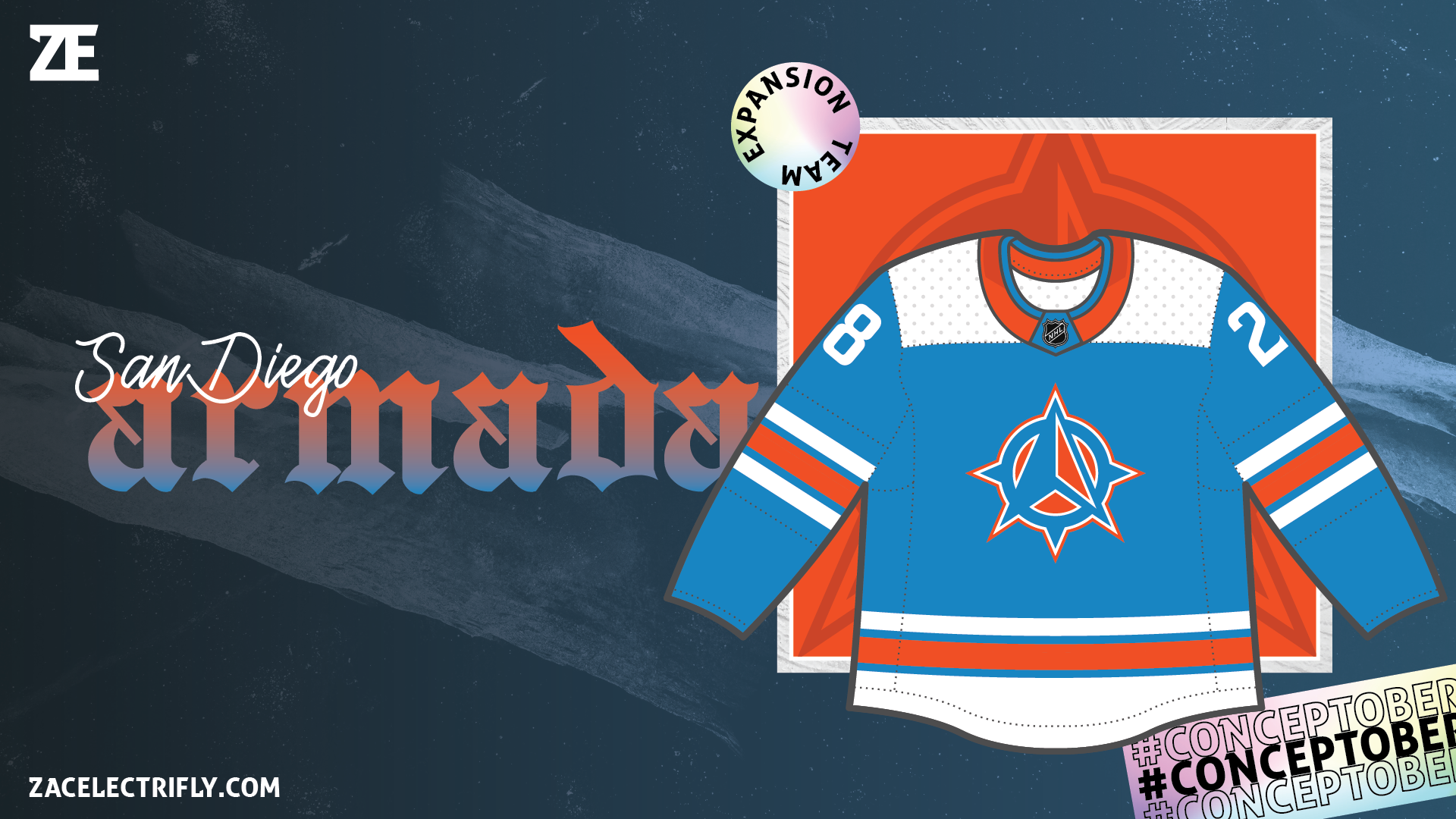 I used the wheel of names again to pick a team for this concept. I took all of the North American cities that already have teams in Major League Baseball, the National Football League, the National Basketball Association, and Major League Soccer that did not have a National Hockey League team to come up with an expansion city. Of those twenty nine cities San Diego ended up being the winner.