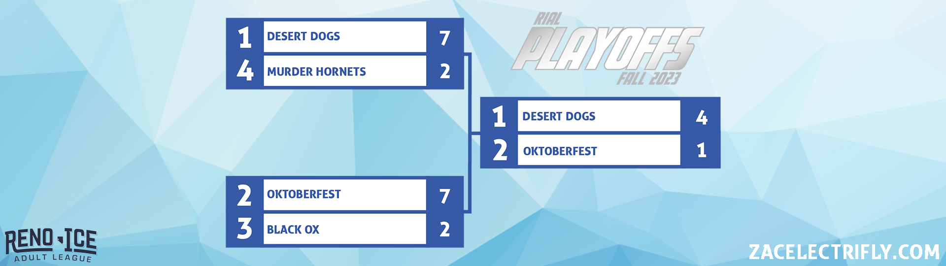 In the Reno Ice Adult League Fall 2023 C-League Championship game the number one seed Desert Dogs played the number two seed Oktoberfest. The Desert Dogs won both of their regular season meetings. The Desert Dogs finished the regular season with a seven game winning streak. Oktoberfest won two of their last five regular season games. The Desert Dogs were eliminated in the C-League Semifinals last season. Oktoberfest made it to the C-League Championship last season as the Summer Shandies.