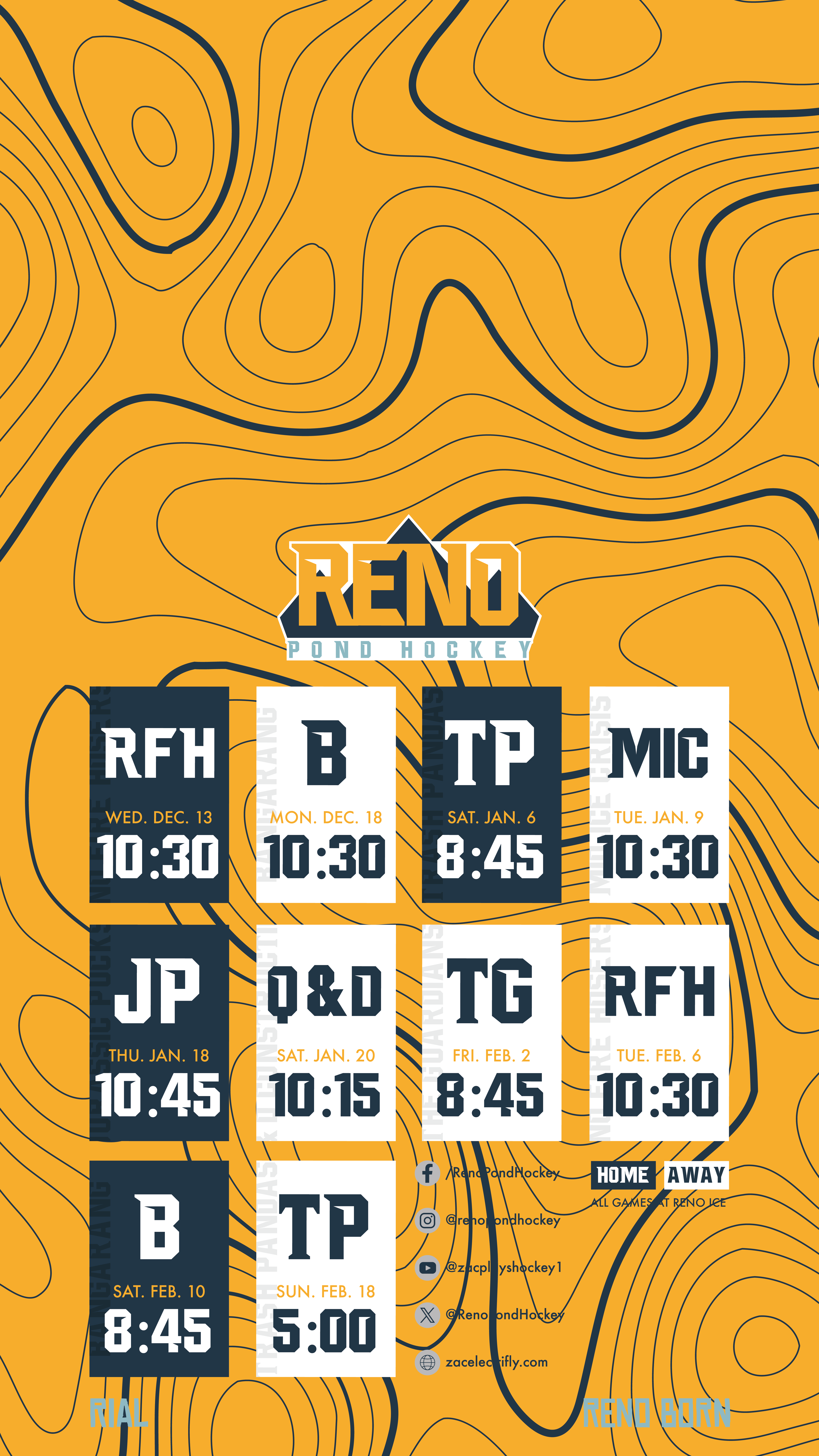 The Reno Pond Hockey schedule for the Reno Ice Adult League Winter 2023-24 season is out now. You can check out the schedule here. In this post, there is a printable schedule that can be printed or used as a digital wallpaper. There is also a mobile schedule that can be used as a wallpaper for cell phones. There is also a downloadable schedule that can be added to your calendar on your devices.
