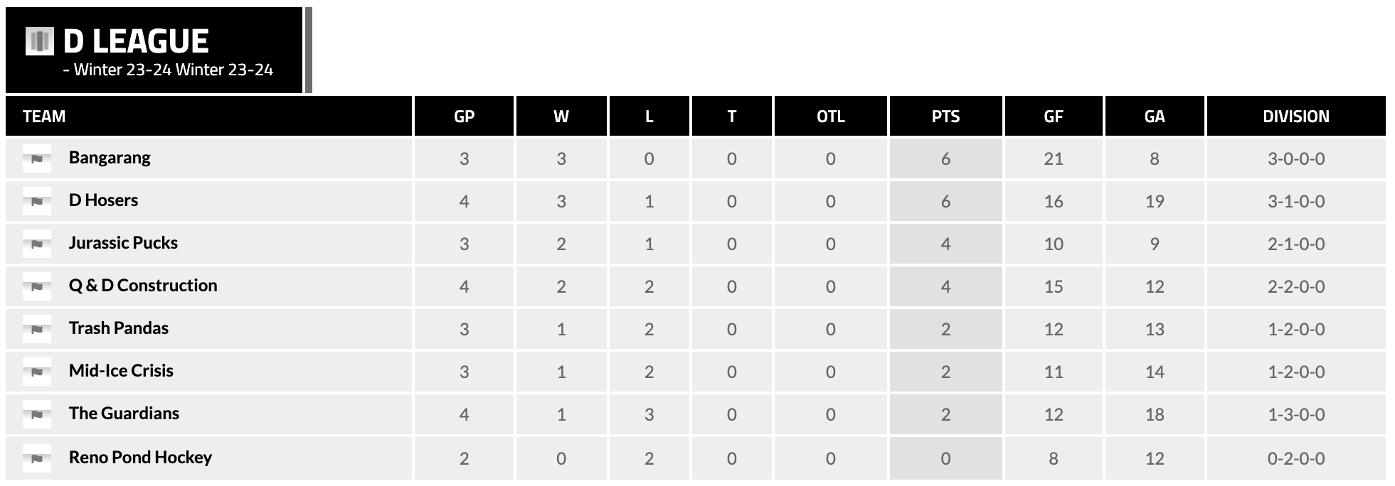 | #8 | Reno Pond Hockey | -3 | #5 |