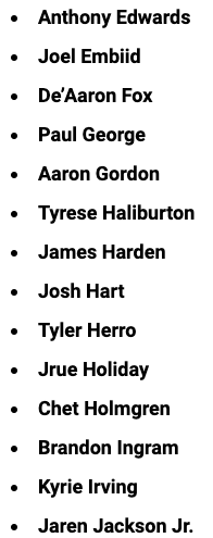 Only five players are in this pool that were on the 2020 Olympic team. Twenty three of the thirty NBA teams have at least one player in this player pool. Kevin Durant has the opportunity if he makes the team to win his fourth gold medal. That will give him more olympic gold medals than any other USA Basketball player. If the LeBron James makes the team, he will be the only player on the team who played on the 2004 team. Joel Embiid is likely the biggest key to the United States winning another gold medal. He is averaging 35.3 points per game plus he has a 53% field goal percentage in the NBA right now. Along with Joel Embiid, Devin Booker, Kevin Durant, and LeBron James are the only players in the top twelve in both points per game and field goal percentage in this player pool. I think those guys are going to be on the team. My picks from this player pool would be Joel Embiid, Kevin Durant, Devin Booker, LeBron James, Jarrett Allen, Donovan Mitchell, Stephen Curry, Bam Adebayo, Jayson Tatum, Anthony Davis, De’Aaron Fox, and Kawhi Leonard. As a Sacramento Kings fan I am really hoping De’Aaron Fox makes the team.