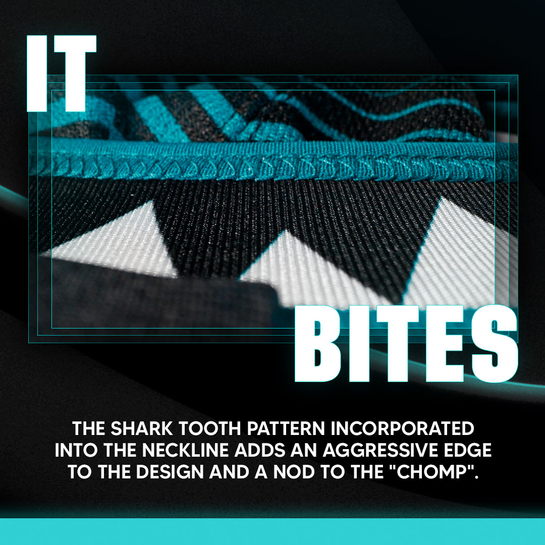 The design of the jersey looks like they tried to mash two jersey designs together. A jersey with just the stripes or just the teal pattern would have been better. We may see more jerseys like this in the future after Fanatics takes over. Jerseys that have some kind of pattern added to them. We might also see a lot more sublimated features on jerseys in the future.
