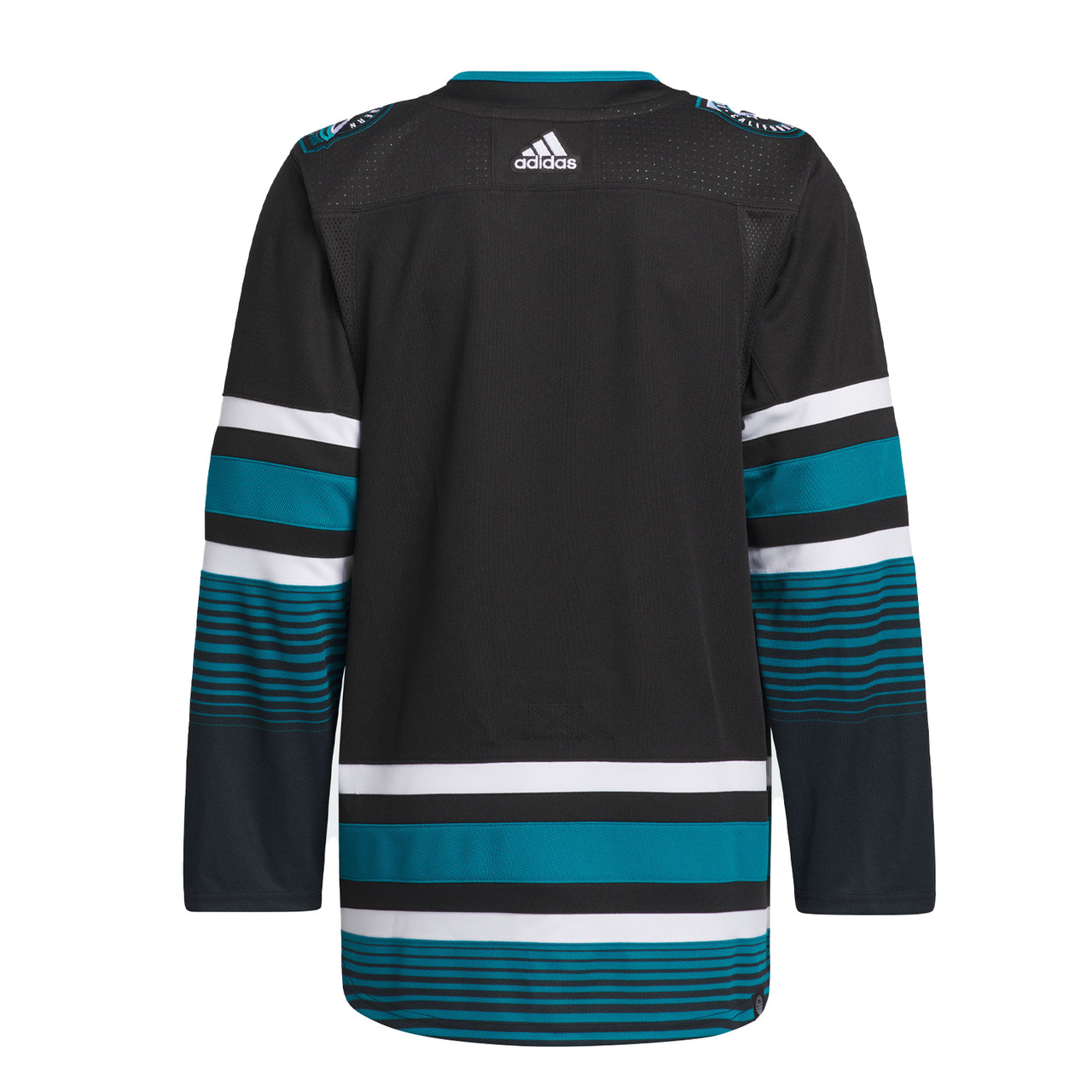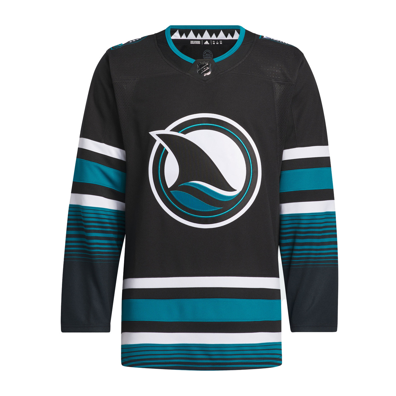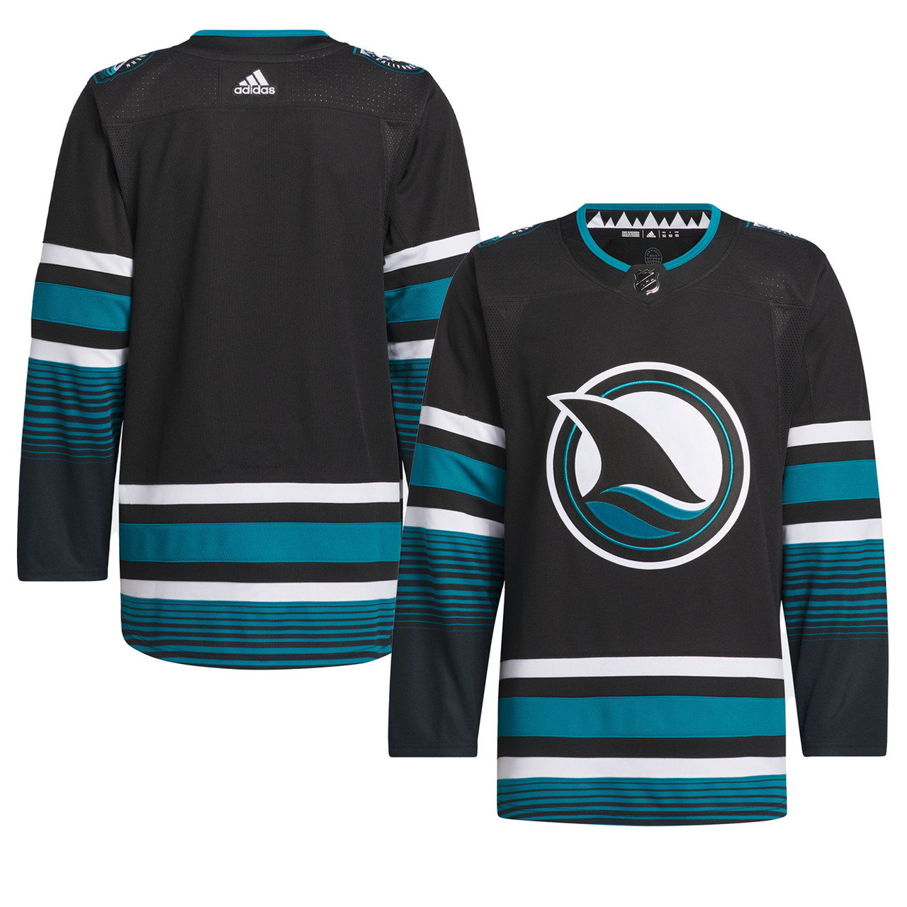 Last season the San Jose Sharks introduced new uniforms. While they are based on their original uniforms from 1991, they did not resinate with fans as well. This season they are bringing back black alternate uniforms. The Sharks have had a black jersey almost every year since 2001. Their new jerseys are black, white, and teal. It has teal and white stripes with a teal pattern on the arms and bottom. On the front of the jersey is their alternate shark fin logo. On the shoulders is their alternate Northern California logo. The Northern California logo on these jerseys is different than the one they used in 2015. On the collar is a shark tooth pattern.