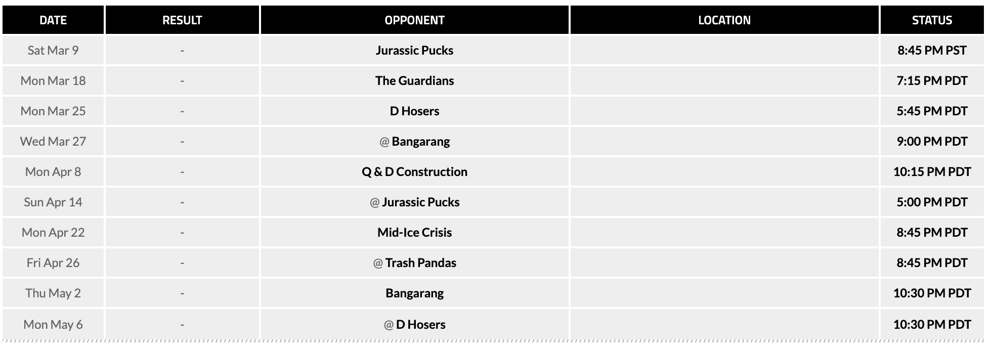 1. […] for the Reno Ice Adult League Spring 2024 season is out now. You can check out the schedule here. In this post, there is a printable schedule that can be printed or used as a digital wallpaper. […]