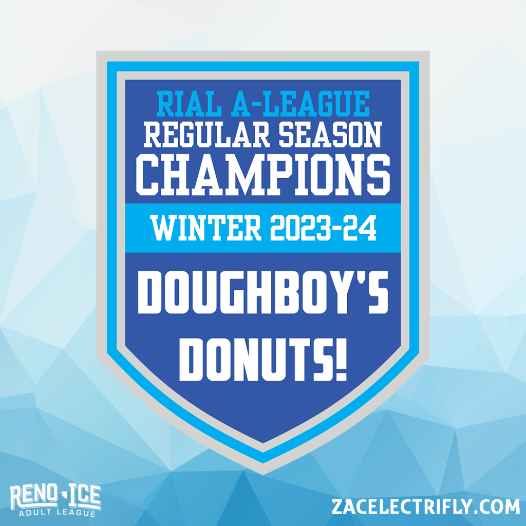 Doughboy’s Donuts! have won the RIAL Winter 2023-24 A-League regular season title. Did that with nine wins and eighteen points. This is the Doughboy’s Donuts! second A-League regular season title and third A-League regular title as a franchise.