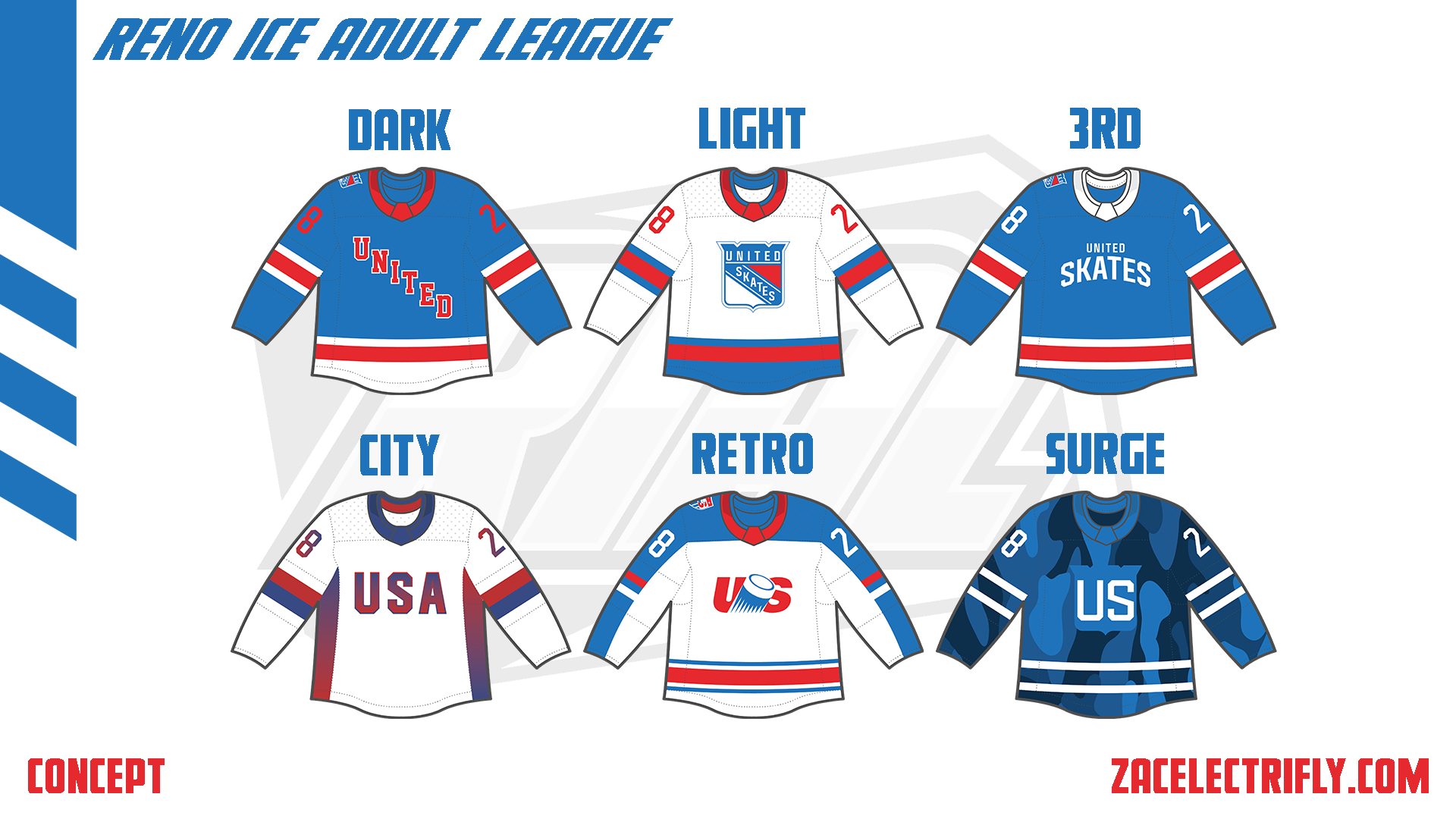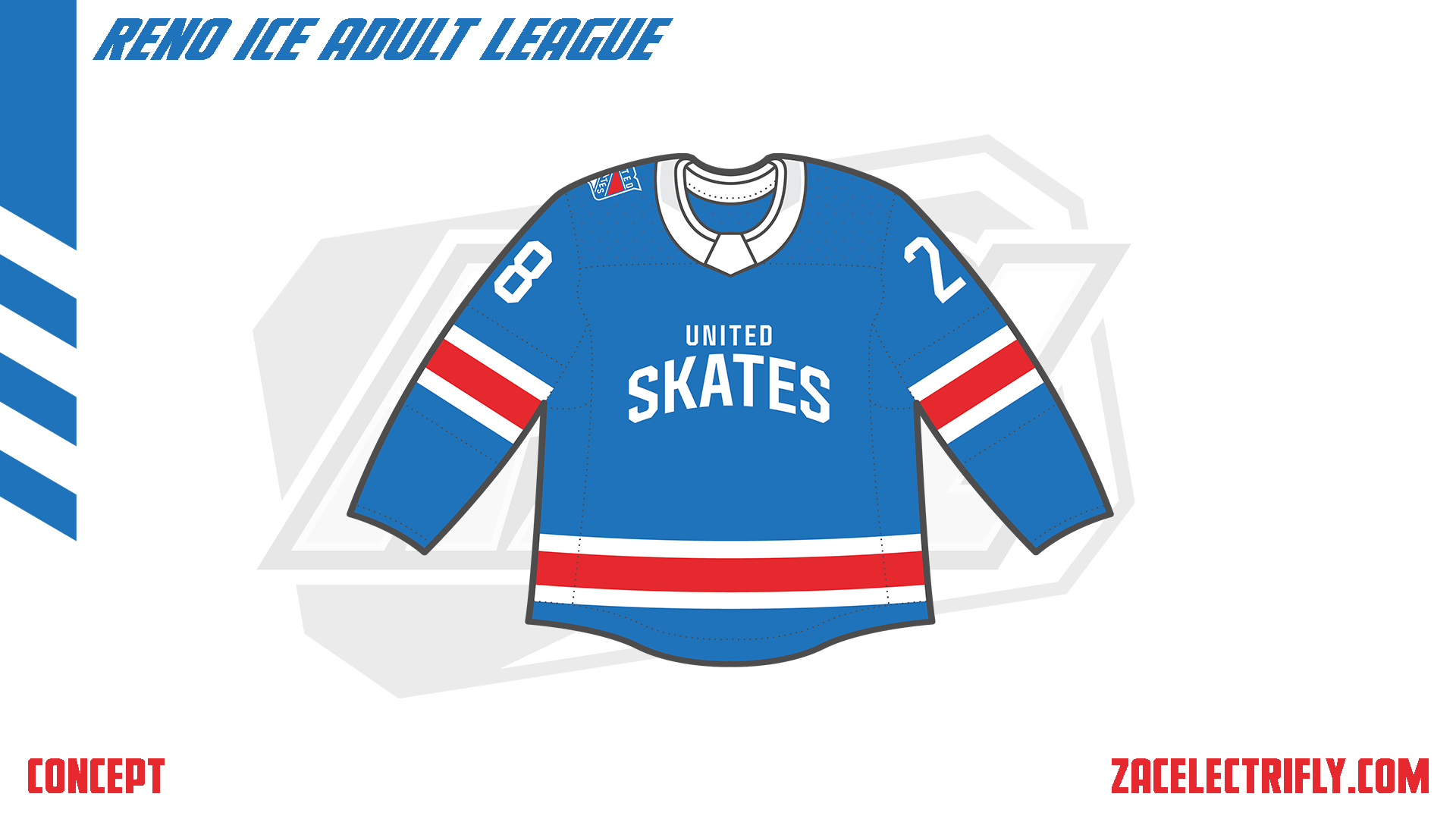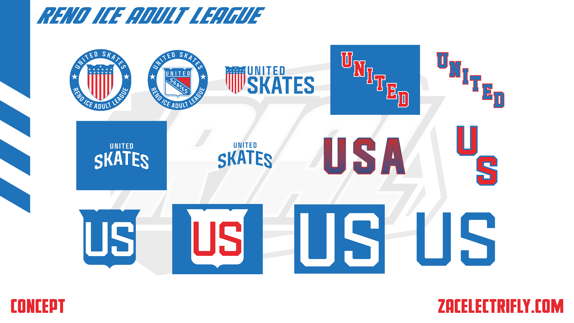 Up next in the Reno Ice Adult League concept are the United Skates. The Trash Pandas are the last season two expansion team. Their name comes from a play on the United States. Their nickname is United or US. In this concept the United Skates are owned and operated by the Reno Ice United States team. All of the players on the United Skates qualify to play for the Reno Ice United States team. The rosters are not be exactly the same but the United Skates exists in this concept to give Reno Ice United States hockey team players the opportunity to play between “international events”.