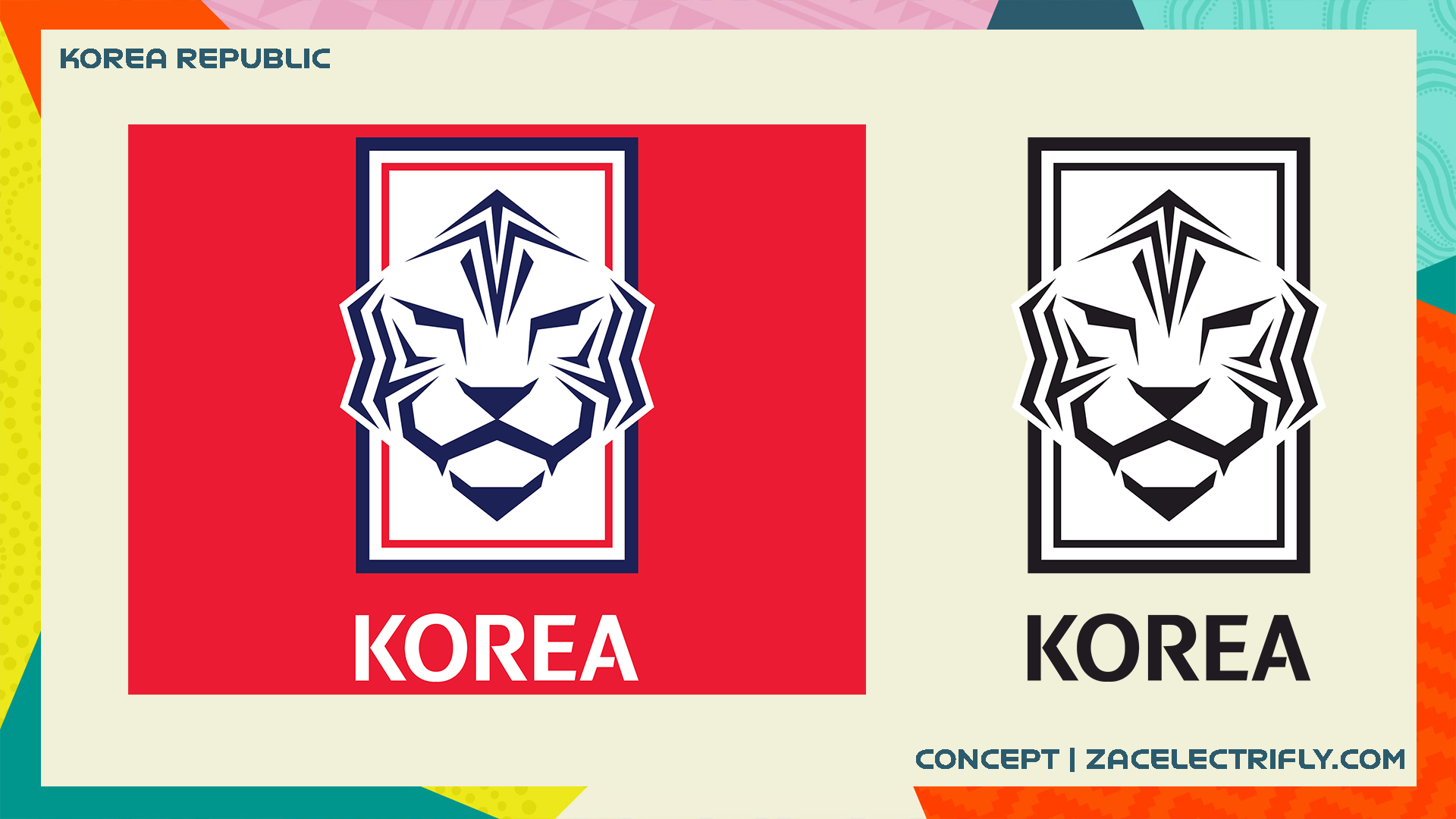 The Korea Republic are sponsored by Nike. Their colors are blue, red, black, and white. I did not modify their logo. They have a red jersey and a white jersey. On the collars of both jerseys is 1933 for when their soccer federation was founded.