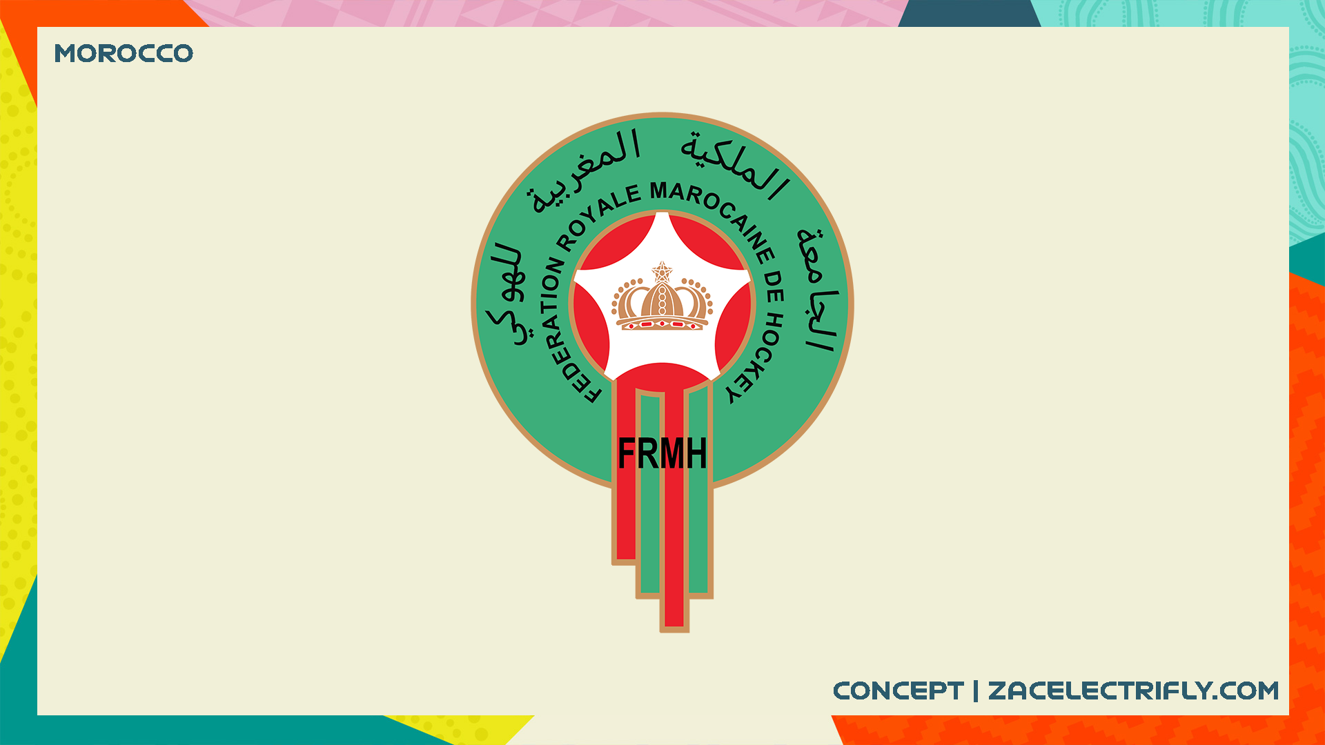 Morocco are sponsored by Puma. Their colors are red, green, gold, black, and white. I did modify their logo. I changed up the text that is on the logo. They have a red jersey and a white jersey. The red jersey has a pattern on it that matches the one seen on the red soccer jersey. Their white jersey was used The white jersey was used in the 2022 World Cup. It also has a pattern on it inspired by their soccer jersey. Both of the jerseys have “MAR” (Morocco abbreviation) and the Morocco flag in their collars.
