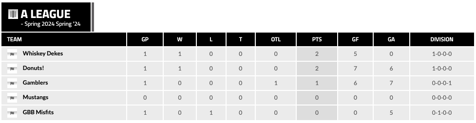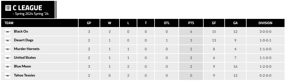 The Reno Ice Adult League Spring 2024 season is in it’s third week. The season starts tonight. In week two twenty one teams participated in ten games. Twelve teams did not play in week two. Only one team has not played yet. Seventeen teams are still undefeated. One team is still undefeated during regulation time. There was one shutout and no shootouts in week two. Thirteen of the thirty three teams have moved since the last power rankings. These power rankings are based on the games played between Monday, March 11th, 2024, and Sunday, March 17th, 2024.
