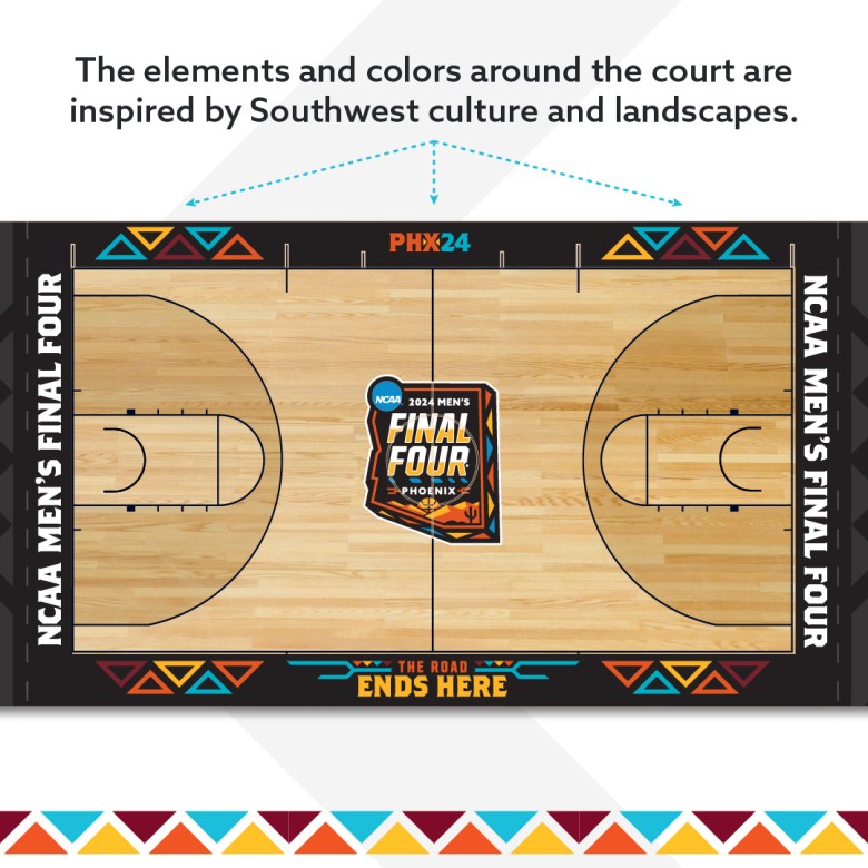Each year the NCAA Division 1 men’s basketball tournament has unique branding centered around the final four. The 2024 branding has a southwest theme. The main logo is in the shape of Arizona. Inside of the shape is the event name and location. The logo incorporates the NCAA logo. IT also incorporates southwestern design elements. It is definitely a ten out of ten event logo. It is definitely a contender for the best Final Four logo ever.