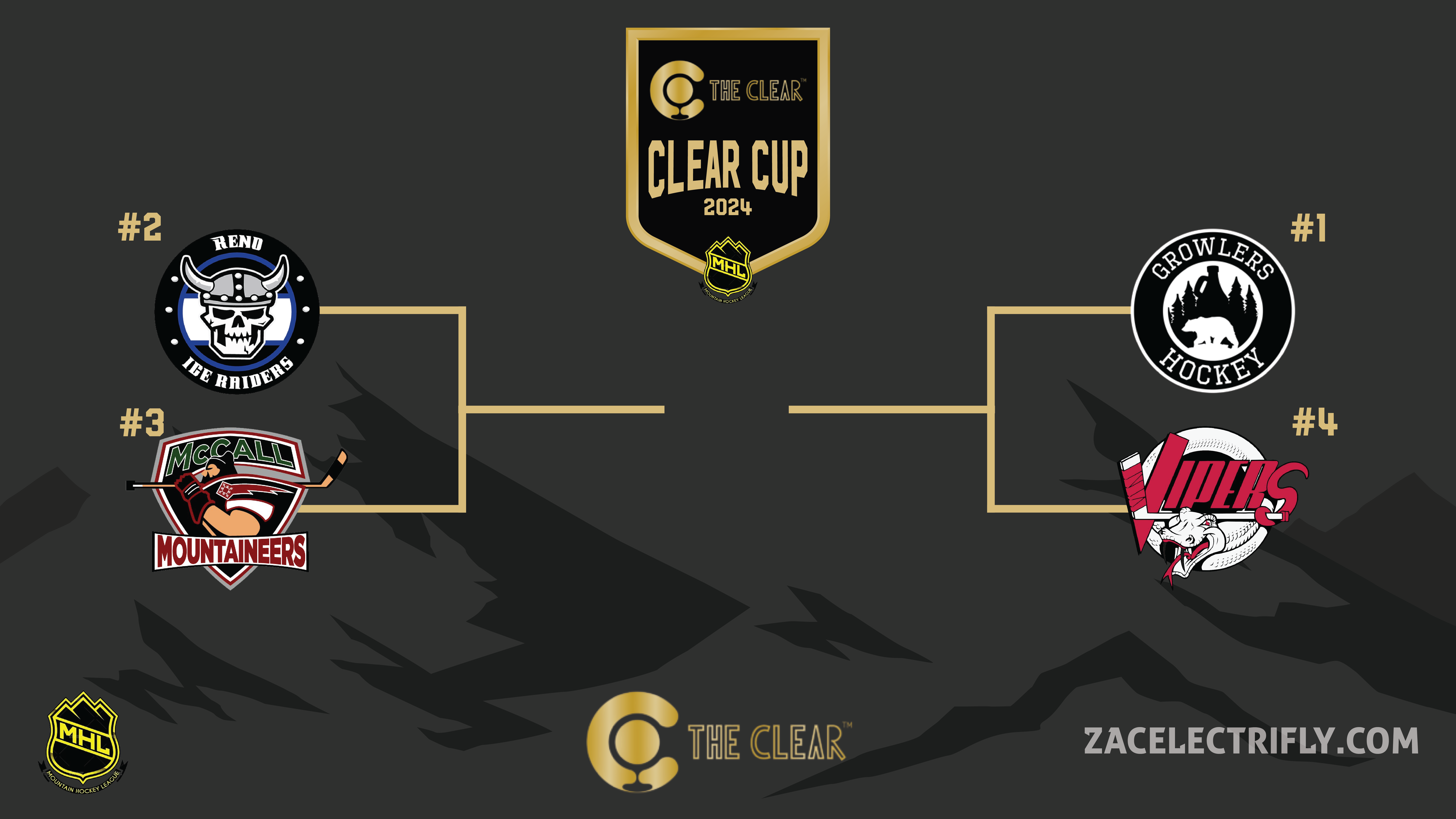 The Santa Rosa Growlers, the Reno Ice Raiders, the McCall Mountaineers, and the Breckenridge Vipers will be in the Clear Cup. There are still regular season games scheduled until the end of march. The Santa Rosa Growlers will be the number one seed in the tournament. They currently have a record of 11-6-2. The Reno Ice Raiders will be the number two seed. They currently have a record of 11-6-2. The McCall Mountaineers will be the number three seed. They currently have a record of 6-4-0. The Breckenridge Vipers will be the fourth seed. They currently have a record of 7-10-1. The Vail Yeti are currently in third place in the standing. I do not know why they will not be in the Clear Cup. They may have opted out.