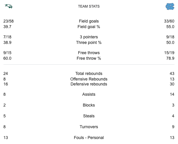 North Carolina had a twelve point lead at halftime. The score was 40-28 going into the second half. With around five minutes left in the game North Carolina had a nineteen point lead. With a minute to go North Carolina had expanded their lead to thirty points. North Carolina did not let up. North Carolina won the game 90-62. This was the most dominating performance in the tournament up to that point. North Carolina advance to the Second Round. Last time they were in the second round was in 2022. #1 North Carolina will face #9 Michigan State in the Second Round.
