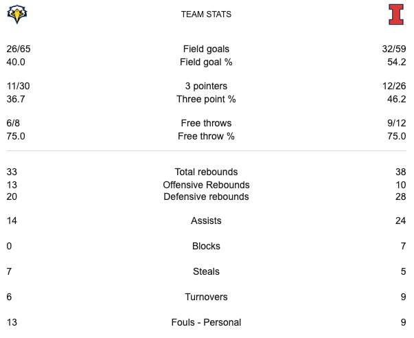 Illinois had a one point lead at halftime. The score was 39-38 Illinois going into the second half. With around five minutes left Illinois had a twenty two point lead. With around a minute to go Illinois had a nineteen point lead. Morehead State was not able to cut down the deficit. The final score was 85-69 Illinois. Illinois are moving on to the Second Round. Last time they were in the Second Round was in 2022. #3 Illinois will take on #11 Duquesne.