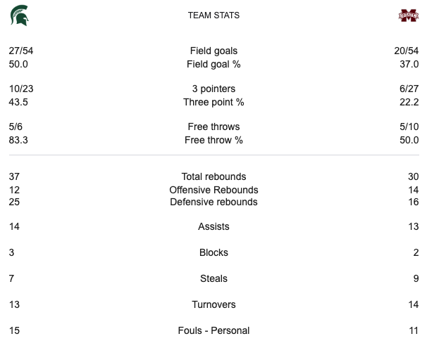 Michigan State lead by seven points at halftime. The score was 63-49 Michigan State with around five minutes left in the game. Michigan state was leading the game 66-51 with just over a minute to go. The final score was 69-51 Michigan State. This is the first upset of March Madness. Michigan State advanced to the Second Round. They were in the second round last year. Michigan State would either play #1 North Carolina or #16 Wagner after this game.