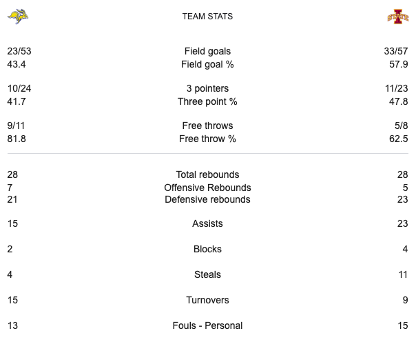 Iowa State had a seven point lead at halftime. The score was 40-33 Iowa State. With around five minutes left in the game Iowa State had extended their lead to twenty two points. With around a minute left in the game Iowa State had a nineteen point lead. Iowa State won the game 82-65. Iowa State advanced to the Second Round. The last time they advanced to the second round was in 2022. After this game Iowa State was waiting on the #7 Washington State and #10 Drake game to see who they would play in the Second Round.