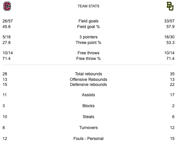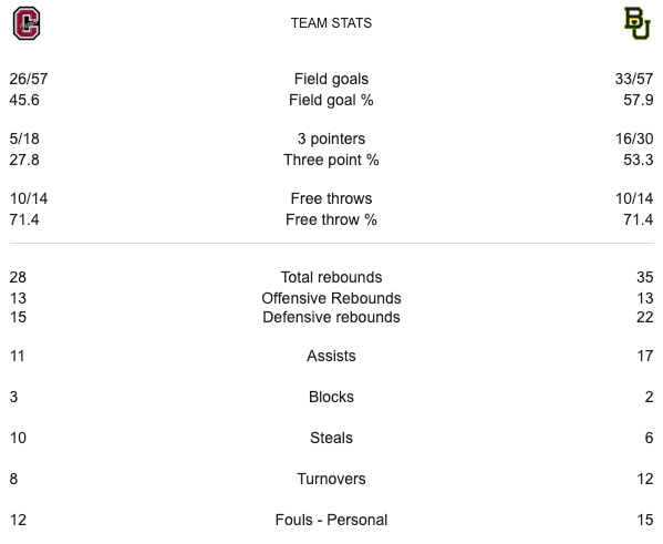 #14 Colgate vs #3 Baylor – Baylor had a twenty point lead at halftime . The score was 54-34 Baylor. Baylor still had a twenty point lead with five minutes left in the game. With around a minute left in the game Baylor had a twenty two point lead. The final score was 92-67 Baylor. Baylor dominated this game and as a result will be moving on to the Second Round. After this game Baylor was waiting to see if they would play #6 Clemson or #11 New Mexico.